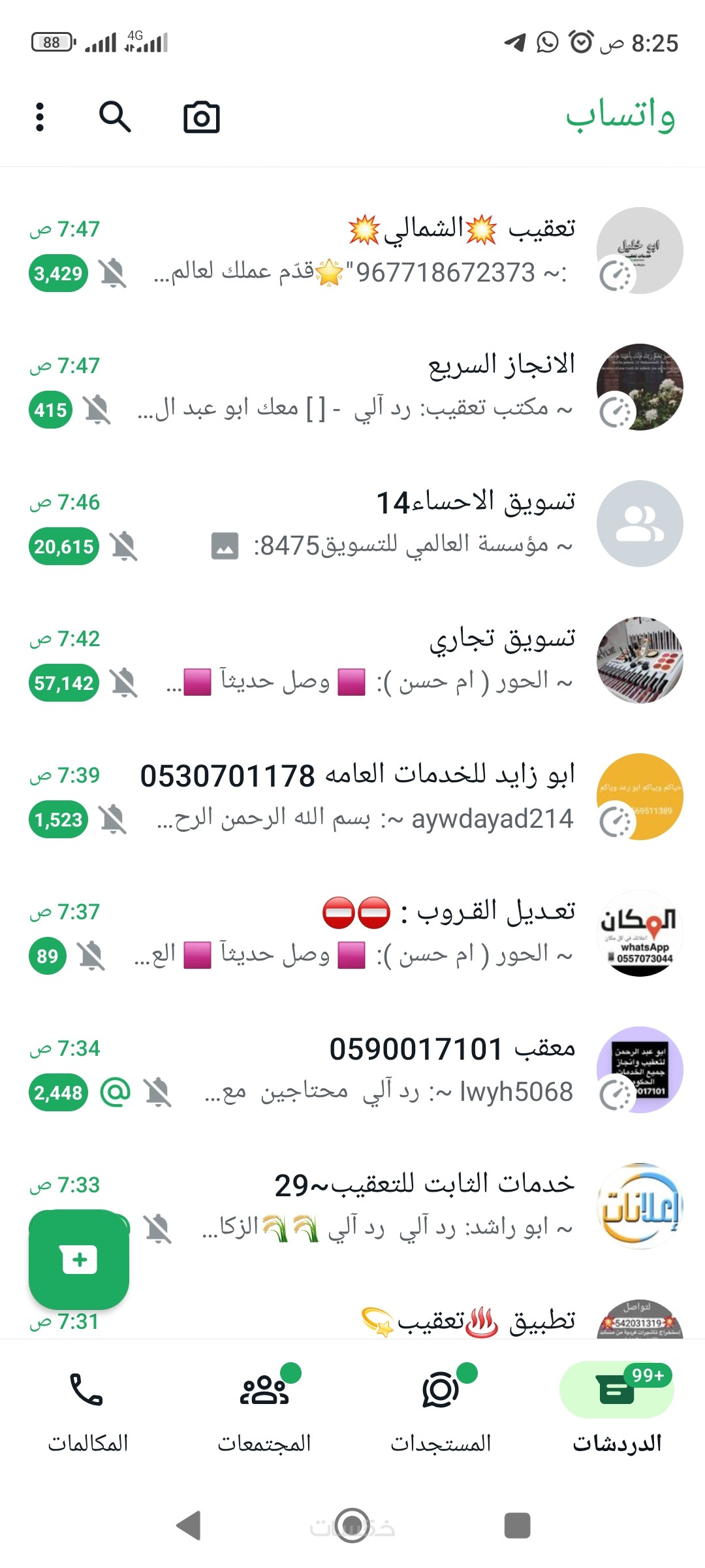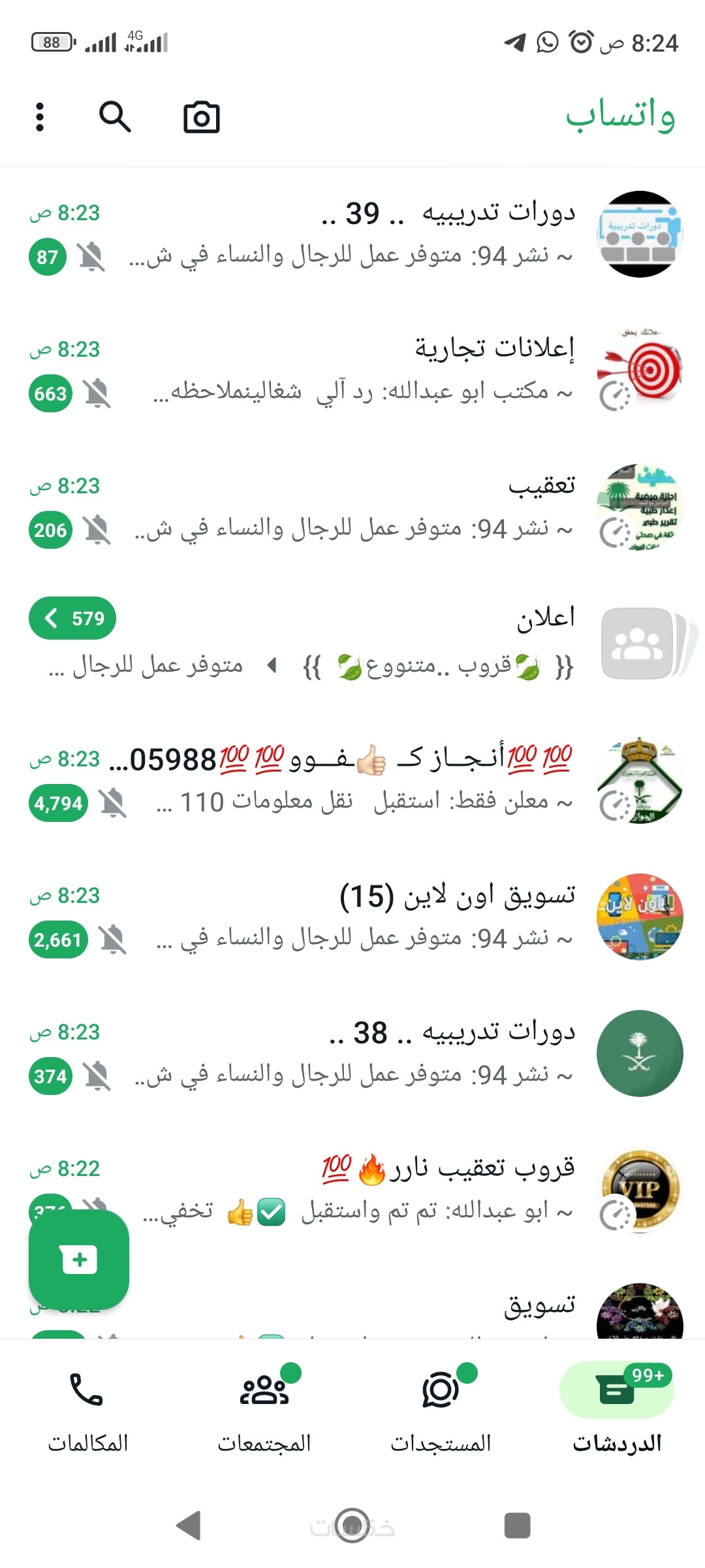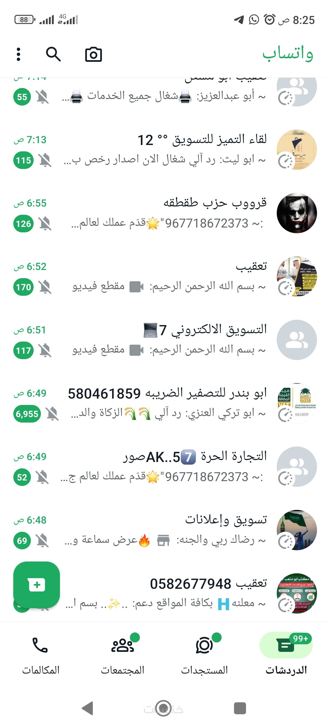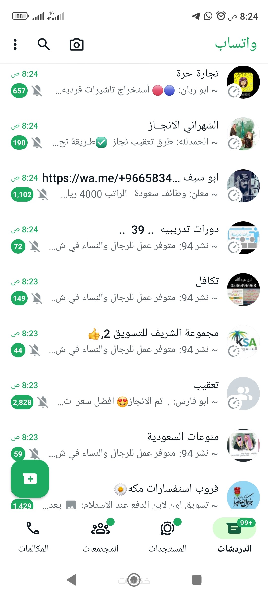 يمكنني مقابل خدمة واحدة أن اقوم بنشر (اعلانك-منتجك-موقعك-حسابك في مواقع التواصل-او اي شيء تريده أنت ) في 120 قروب واتساب سعودي