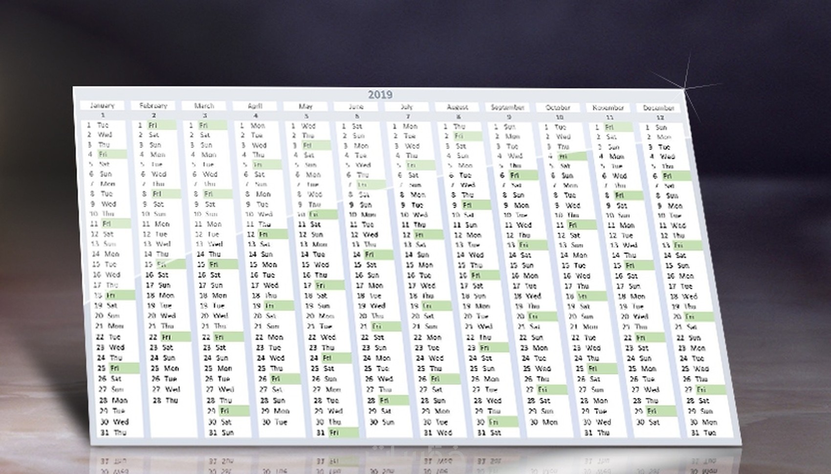 تقويم 2019 ضمن ملف اكسل