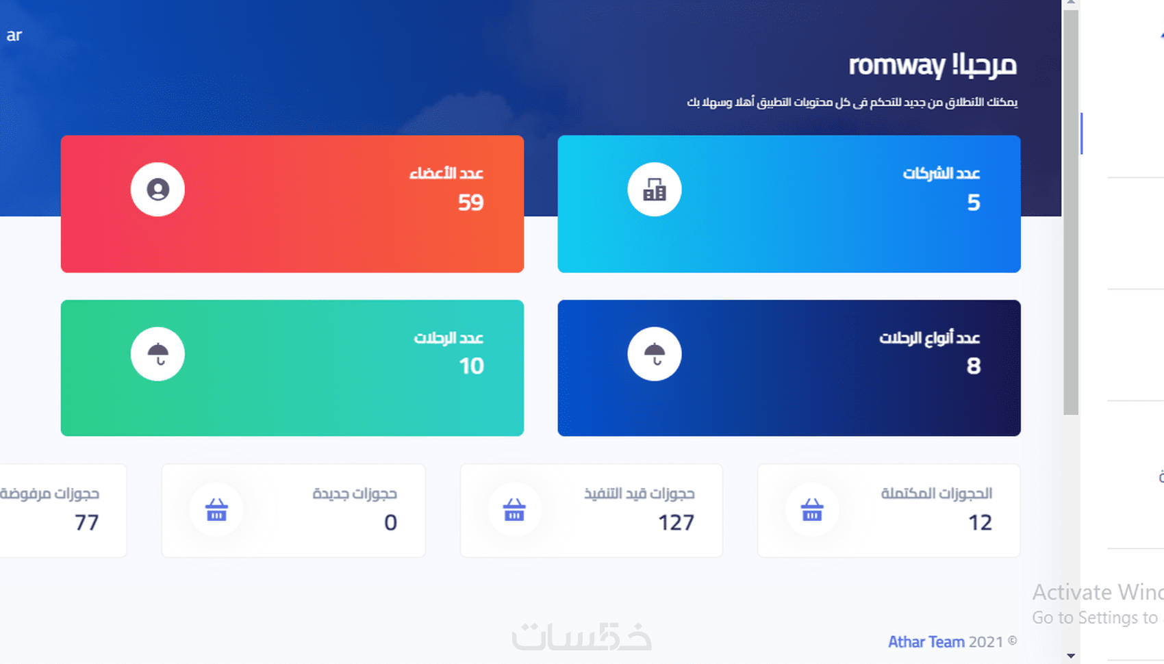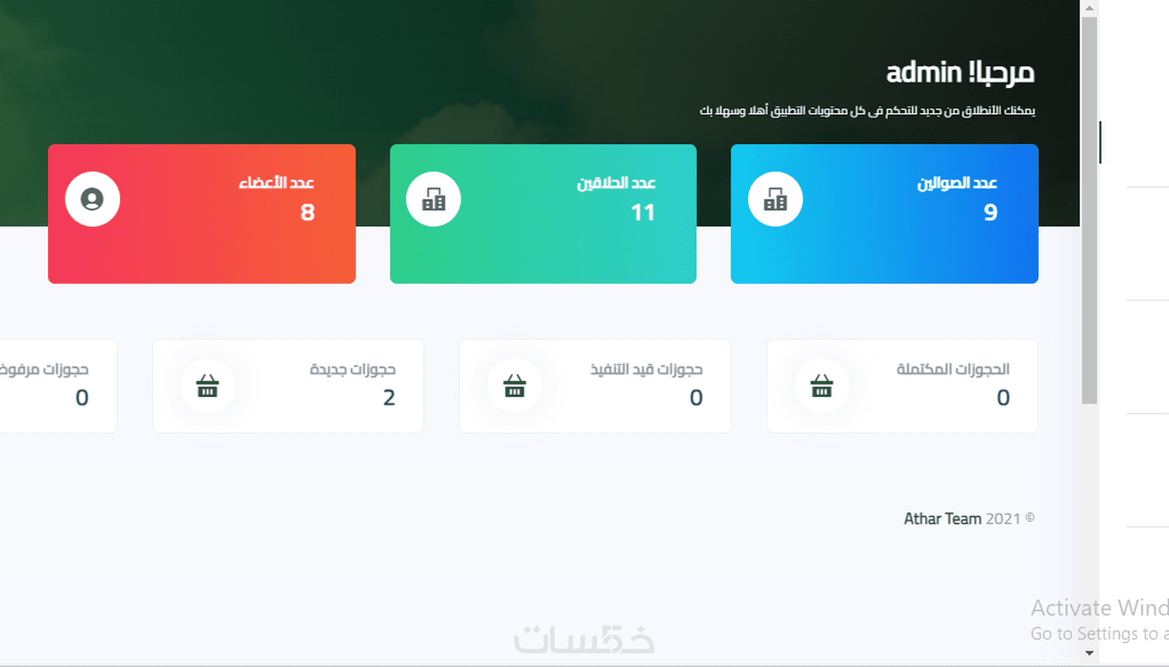 بالاضافه للتحكم بصلاحيات لوحه التحكم وعرض الاحصائيات