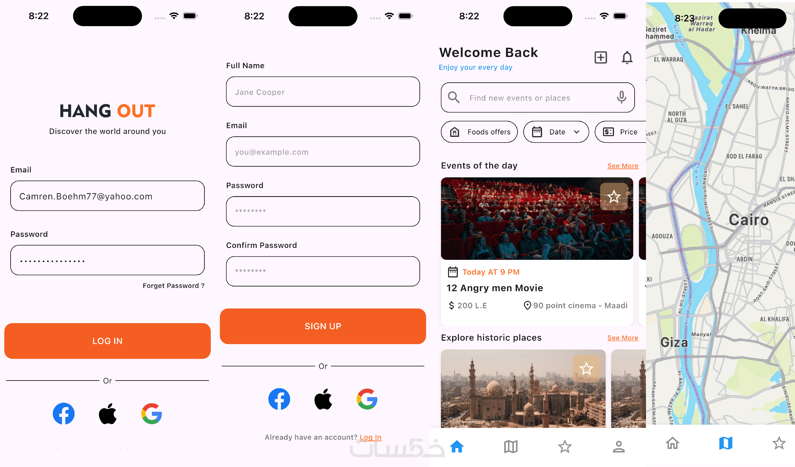 تفعيل نظام تسجيل الدخول بالبريد وكلمة المرور وربطهم مع صفحة التسجيل وتسجيل الدخول في التطبيق