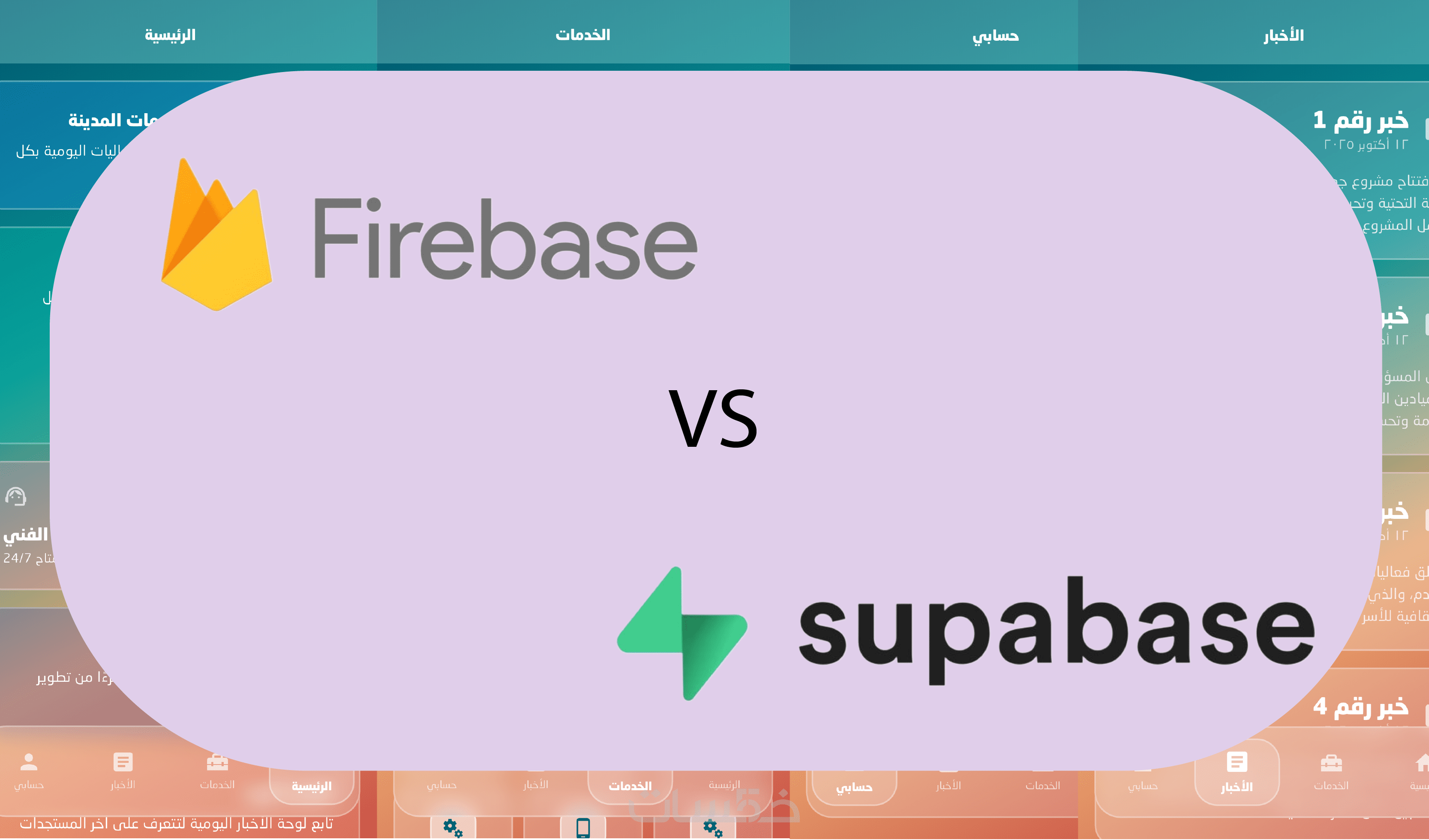 إنشاء المشروع: إنشاء مشروع جديد على منصة Firebase أو Supabase باسم تطبيقك وإعداداته الأولية.