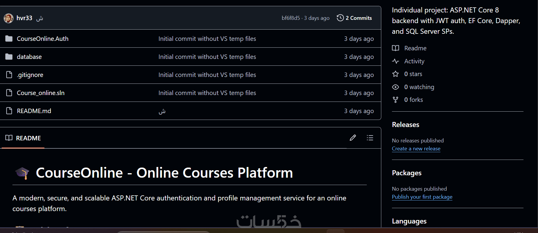 يتم تسليم العمل كملفات مشروع ASP.NET Core.