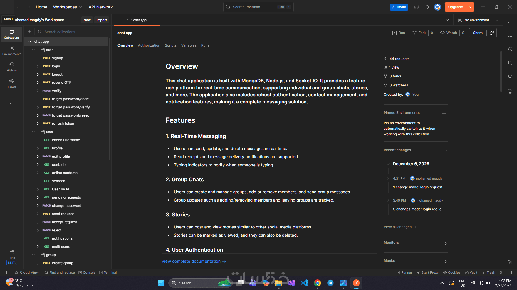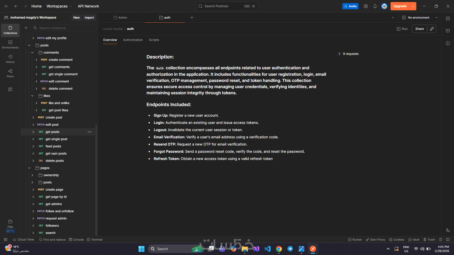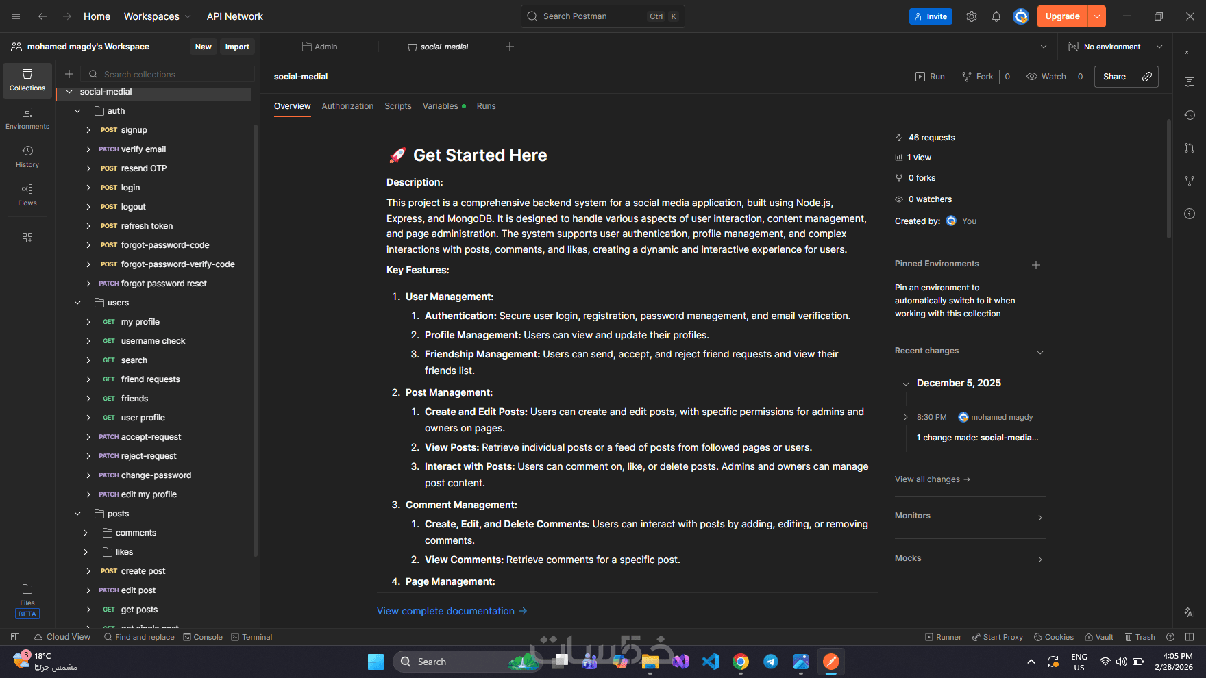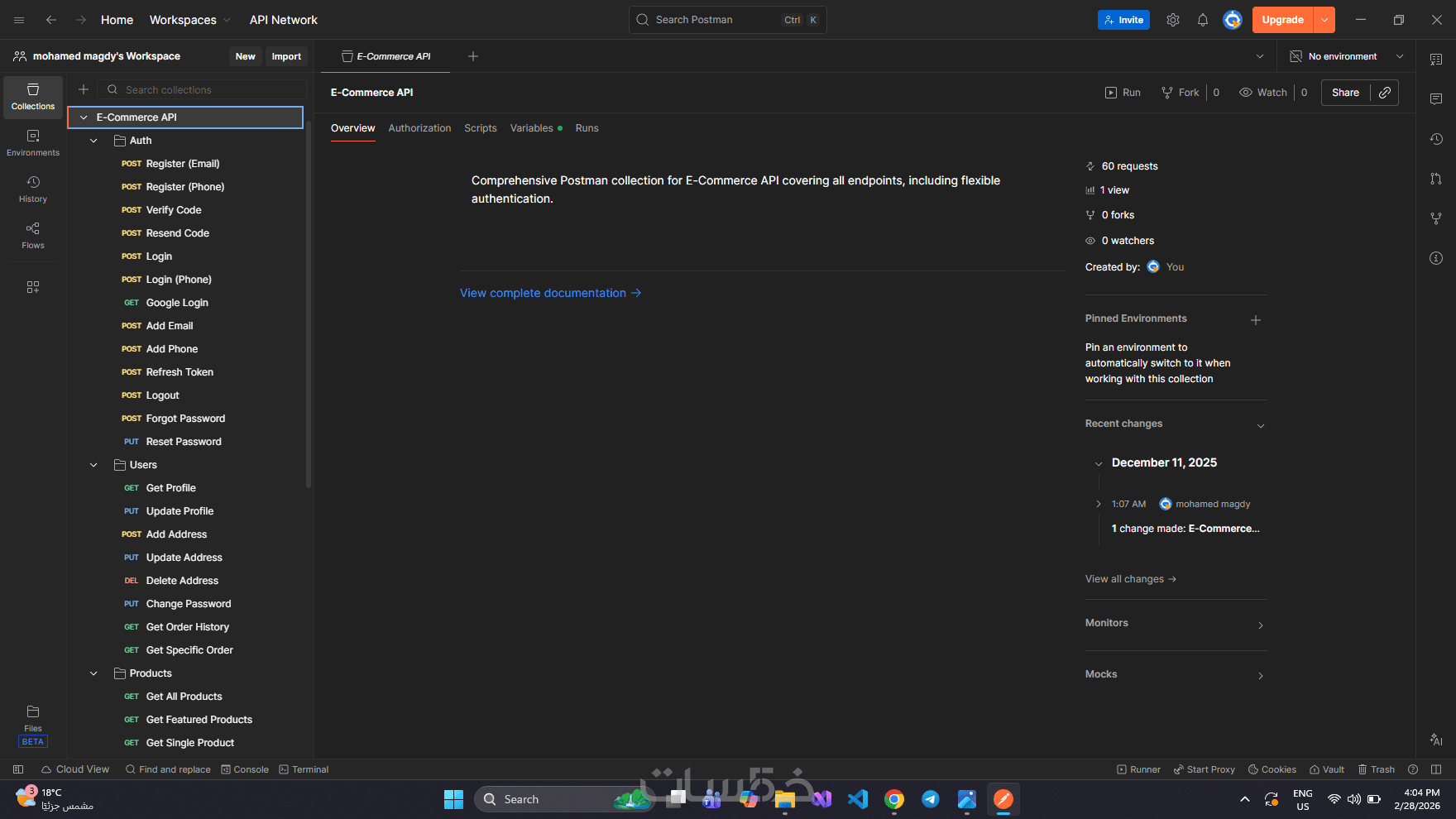 • توثيق كامل للـ API باستخدام Postman Collection أو Swagger