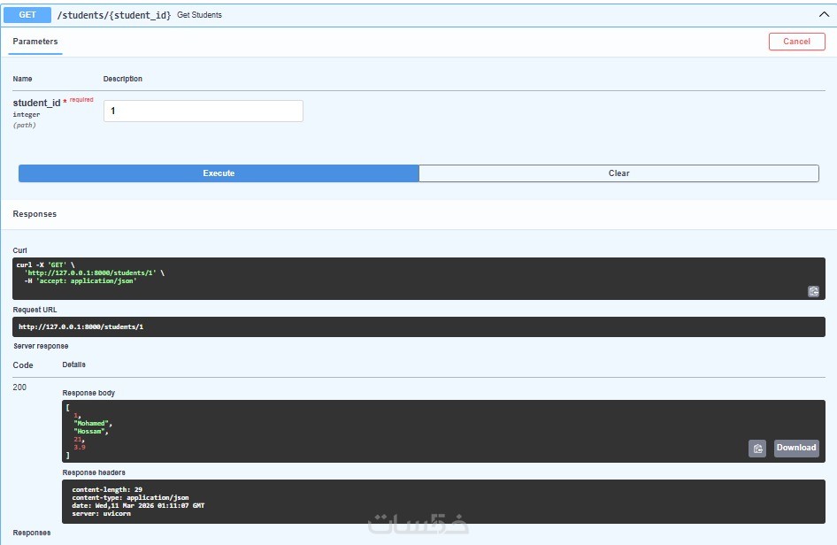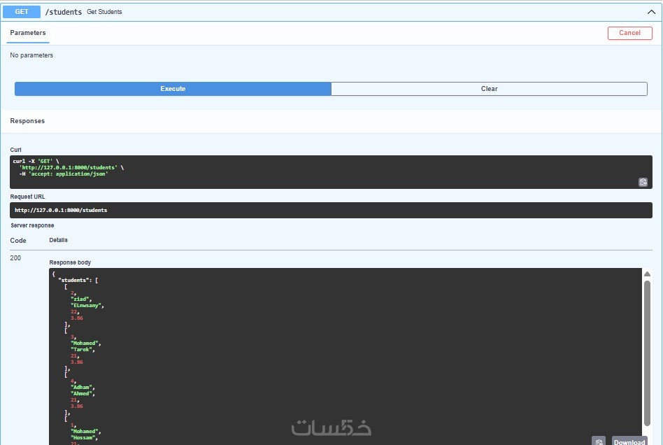 بناء عدد (2) Endpoints: لتنفيذ عمليات محددة (مثل عرض البيانات أو إضافتها).