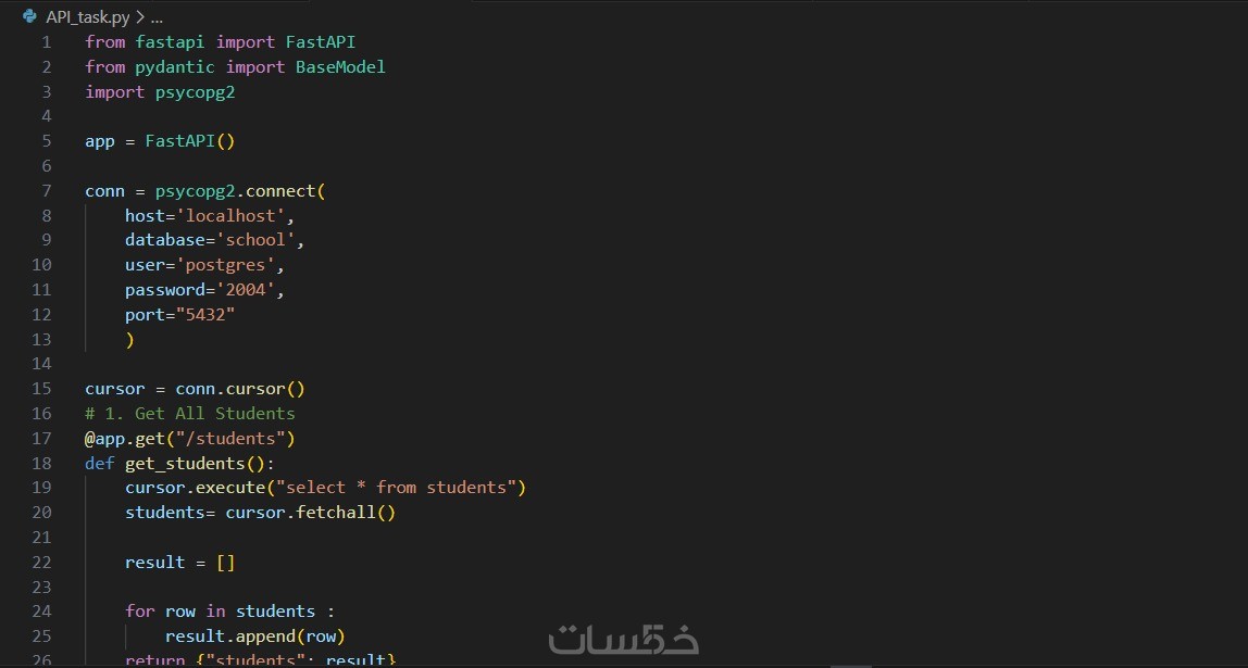 هل تبحث عن نظام خلفي (Backend) قوي، سريع، ومنظم لإدارة بياناتك؟ أقدم لك خدمة بناء RESTful API متكامل باستخدام إطار العمل FastAPI، الذي يضمن لك أداءً فائق السرعة وتوثيقاً تلقائياً (Swagger UI).