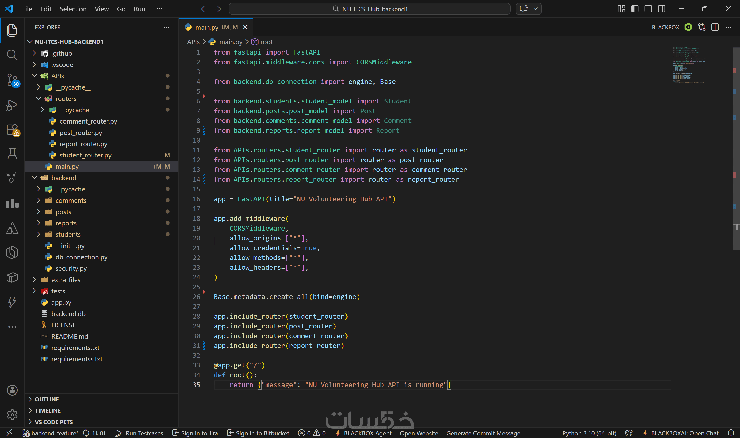 كود Backend كامل مكتوب بلغة Python.