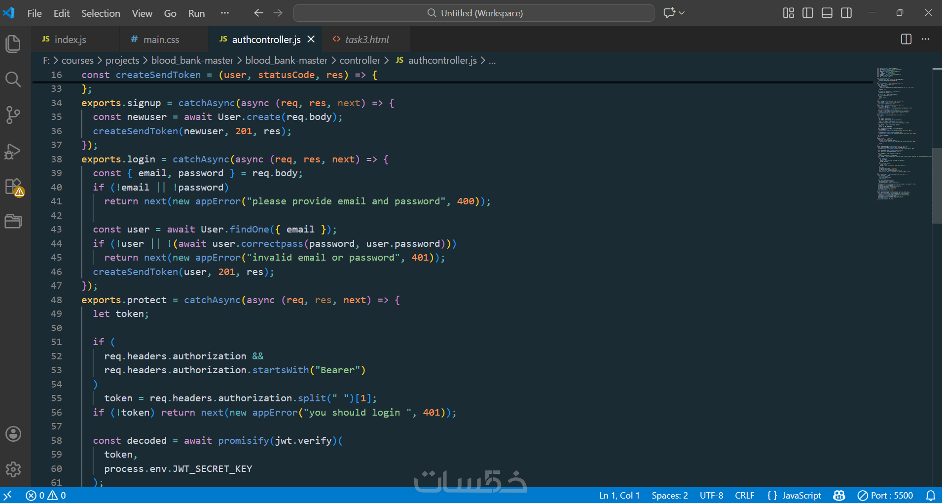 اضافة نظام تسجيل الدخول والتوثيق
