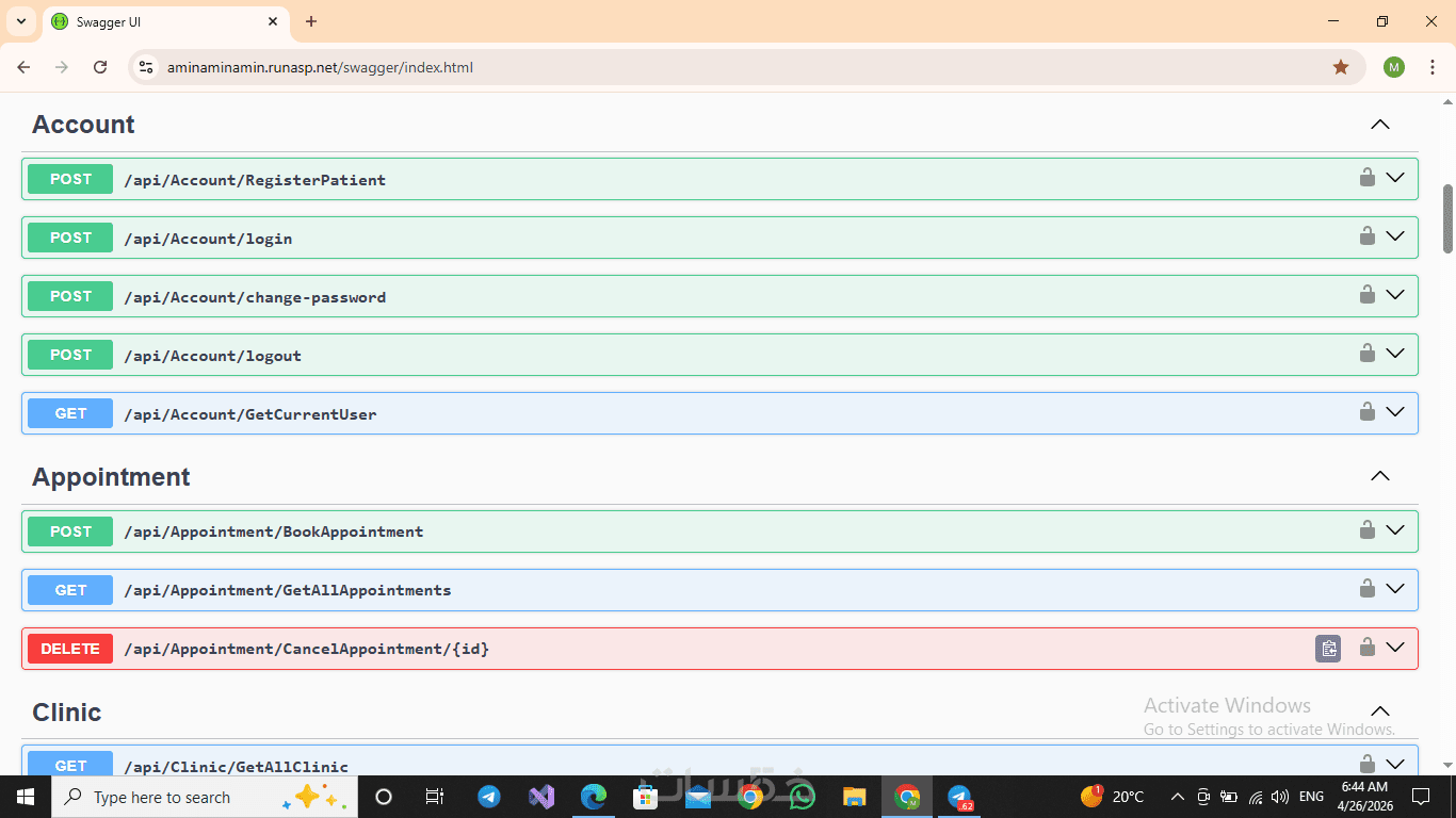 توفير رابط Swagger لاختبار الـ Endpoints بسهولة