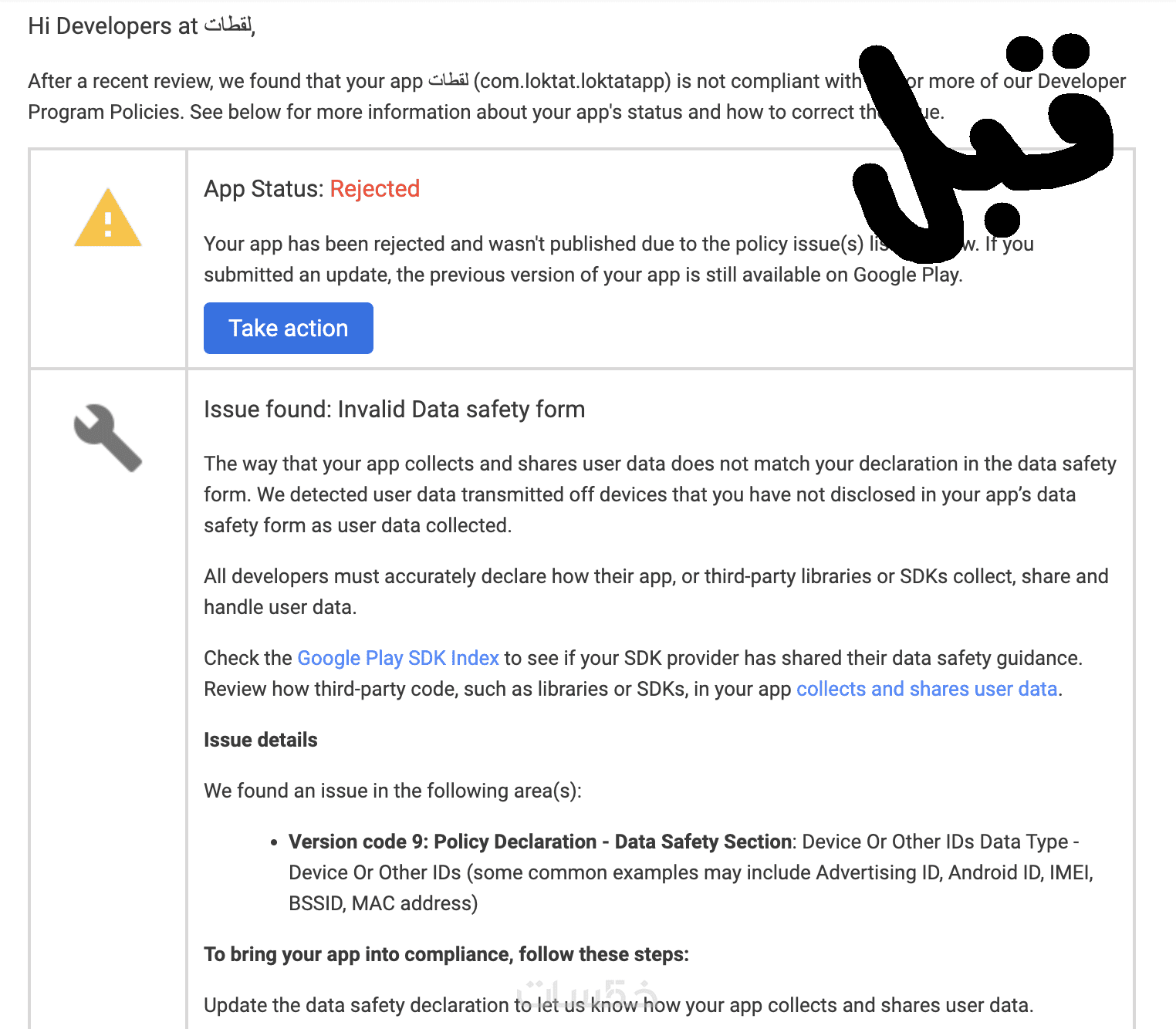 مثل جوجل بلاي وأب ستور، فقد تطلب منك إدارة المتجر إجراء بعض الإصلاحات على تطبيقك قبل قبول رفعه.