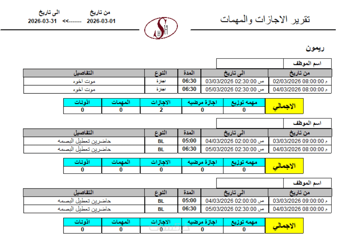 · تقرير الإجازات والأذونات: تنظيم الإجازات الاعتيادية والمرضية.