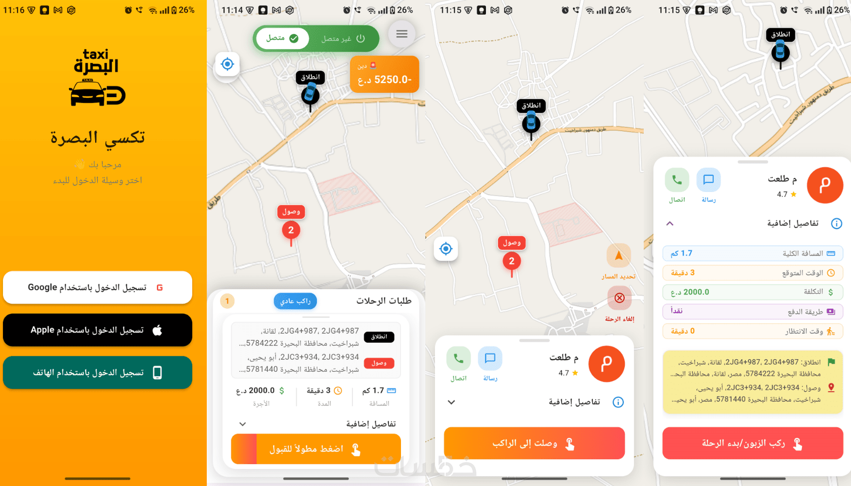 تطبيق تاكسي البصرة للأندرويد والIOS + الداشبورد