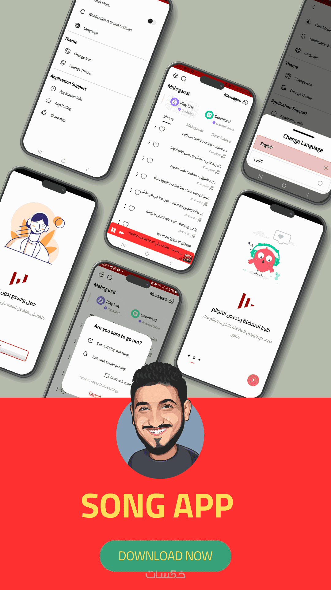 2. تبديل الألوان والخلفيات والرسوم المستخدمة داخل التطبيق.