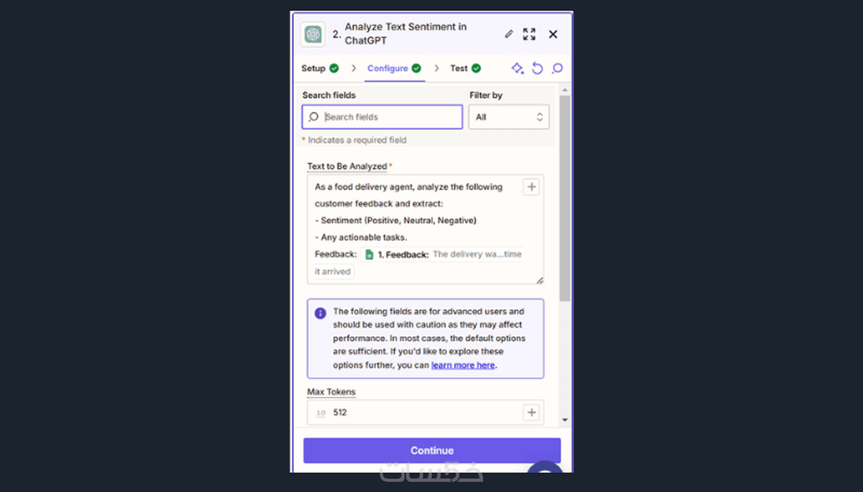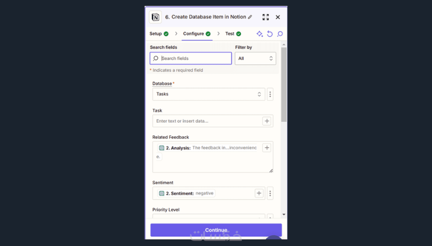 حيث انه عند ملئ استمارة التقييم يتم تحليلها باستخدام chatgpt الخاص بك وتحليل واستخراج التعبيرات والمهام المطلوبة لتحسين الخدمة على هيئة مهام. بعد ذلك يتم إضافتها فى notion