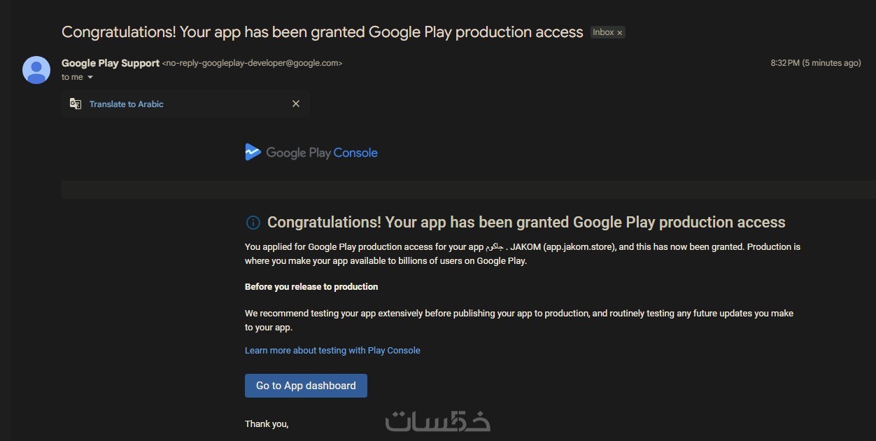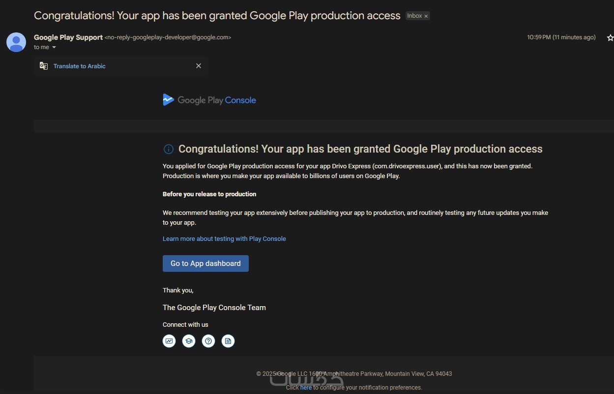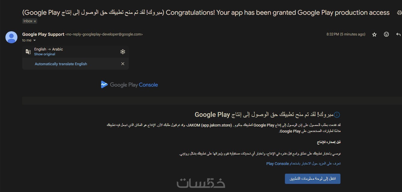 ضمان قبول التطبيق من جوجل واذا تم الرفض يتم متابعة 14 يوم اخري حتي قبول التطبيق