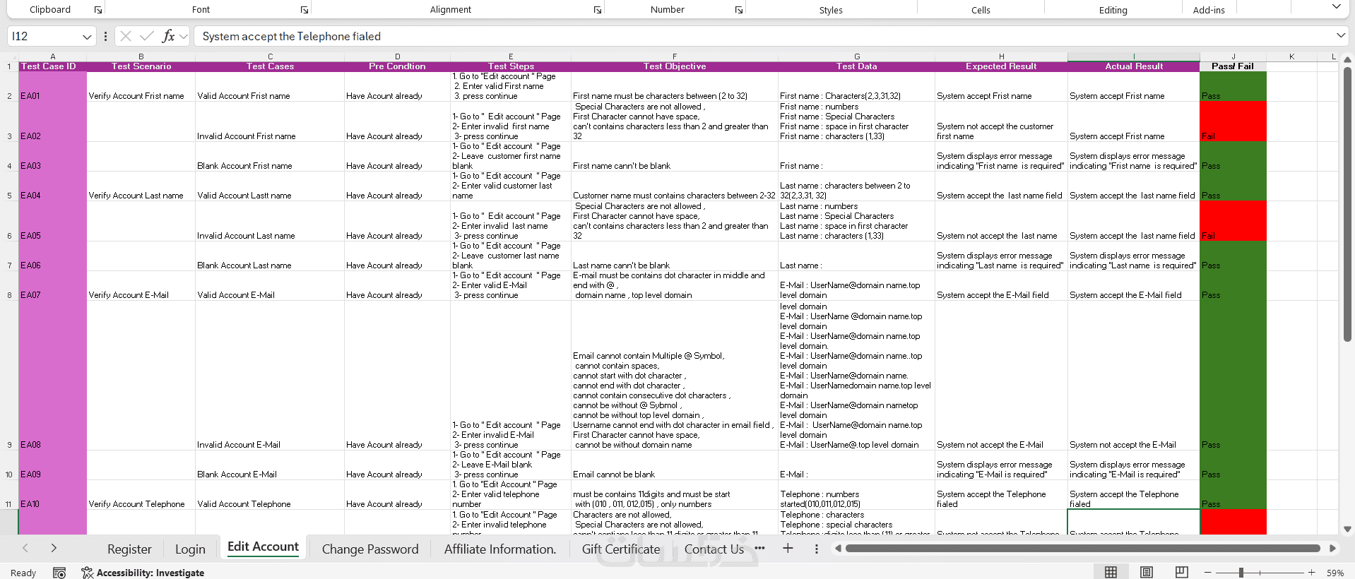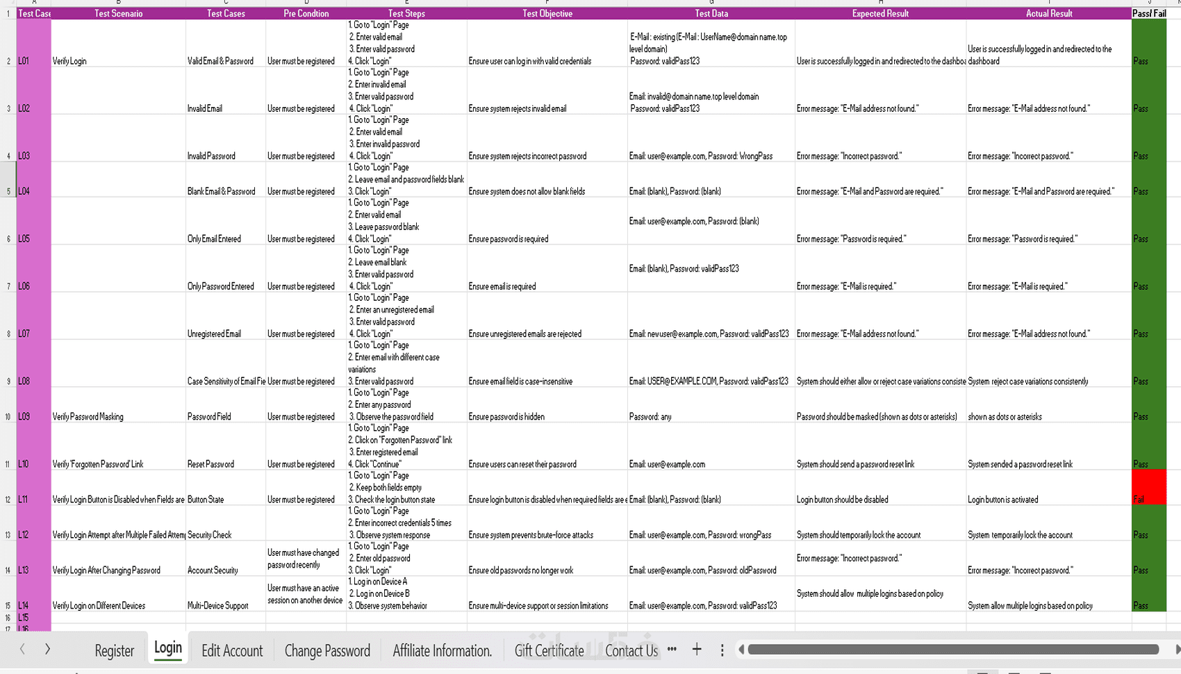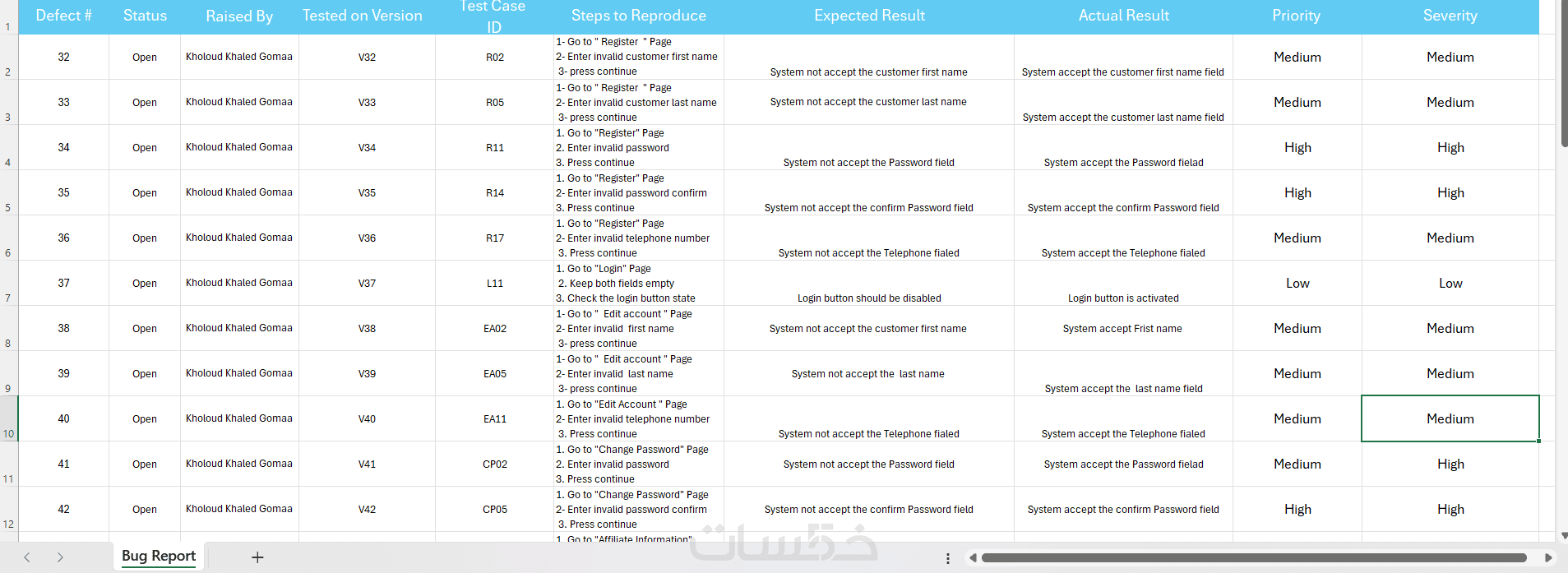 تقرير تنفيذ سيناريوهات الاختبار (Test Cases Report):