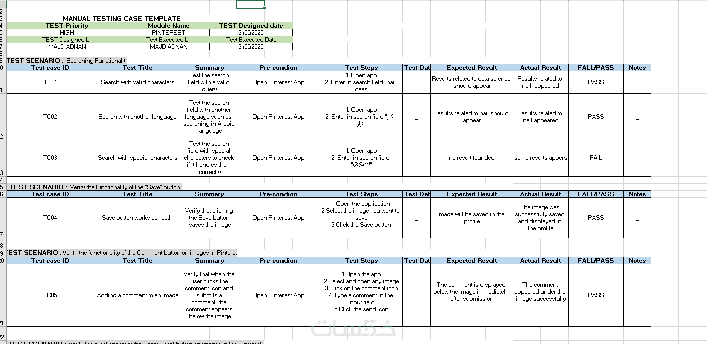 -تصميم وتنفيذ حتى 5 حالات اختبار (Test Cases) مخصصة