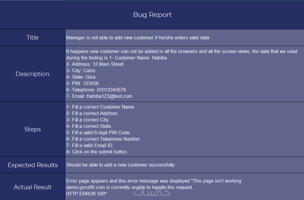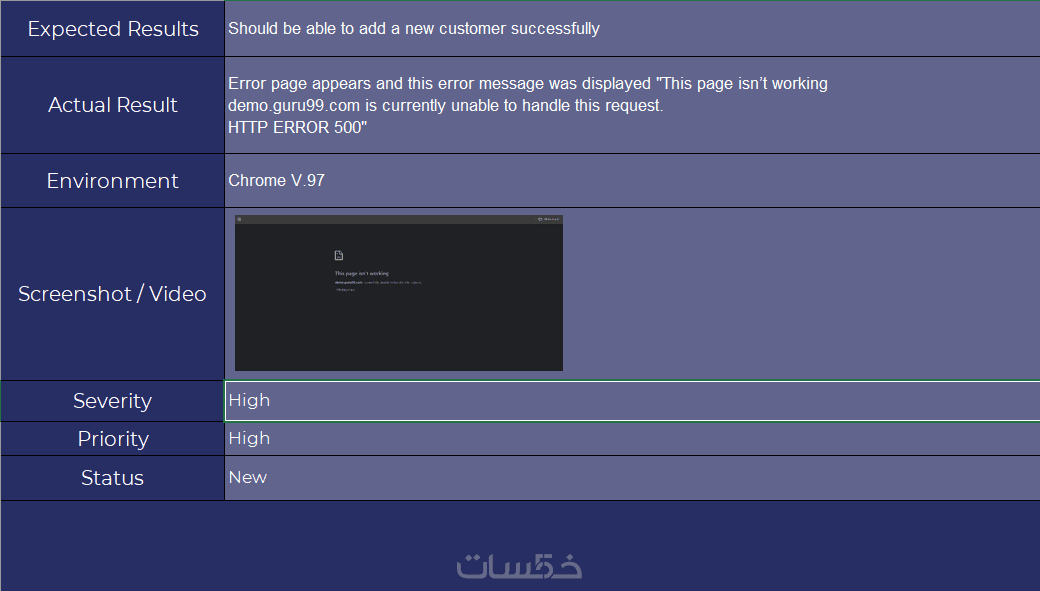 - يشمل وصفًا دقيقًا للمشاكل + لقطات شاشة.