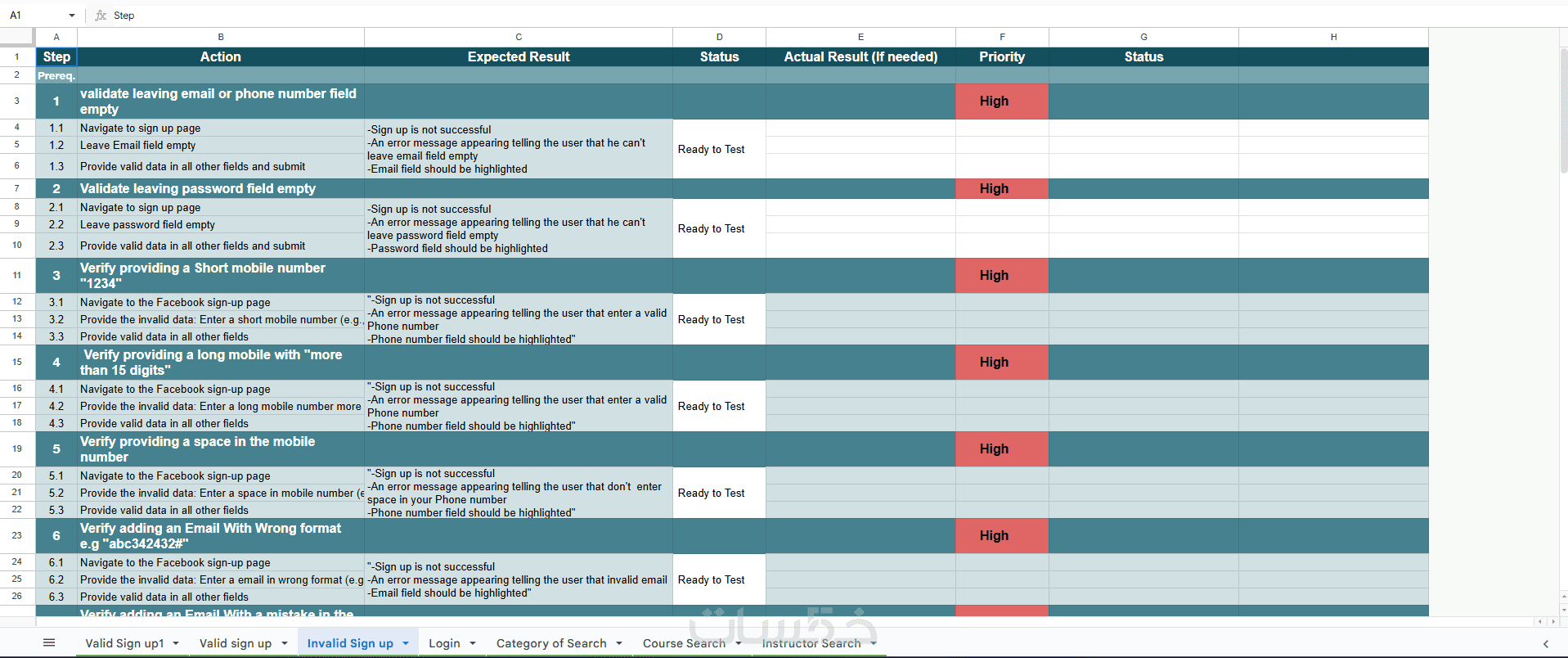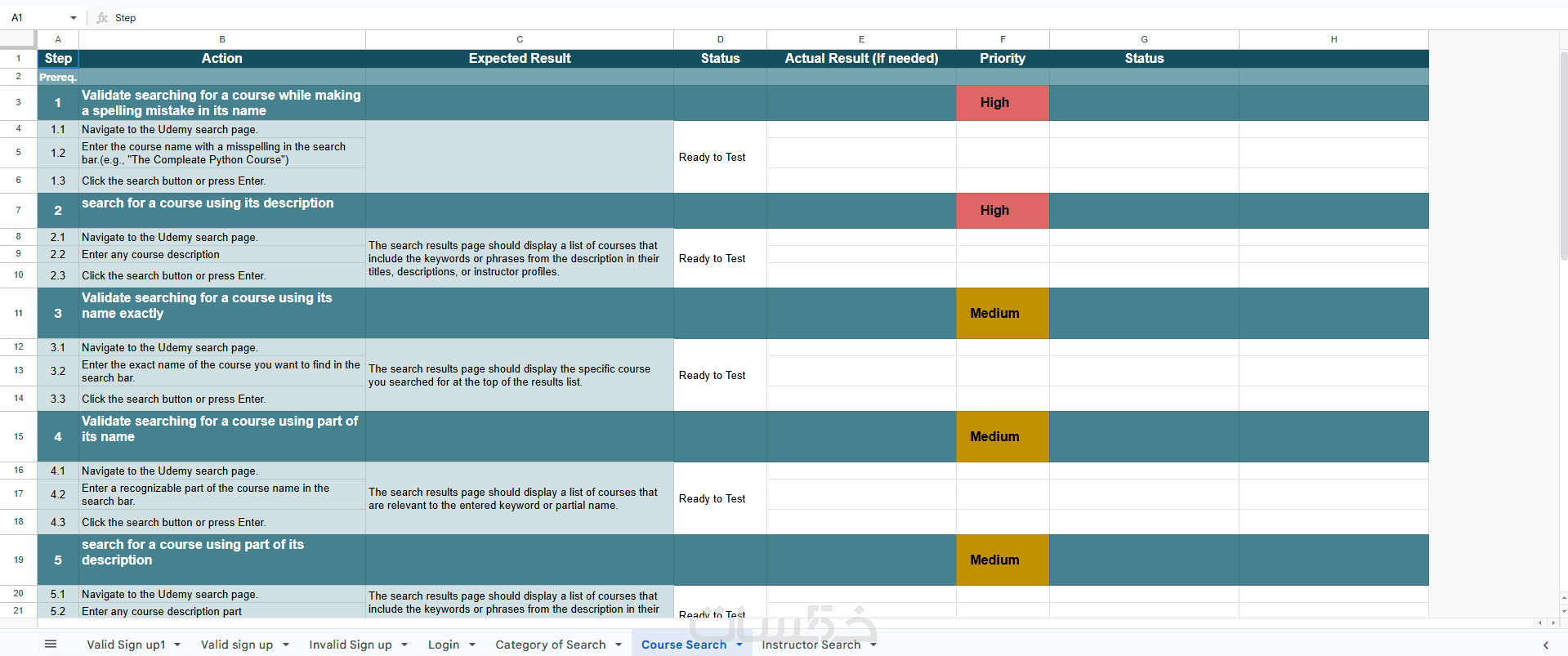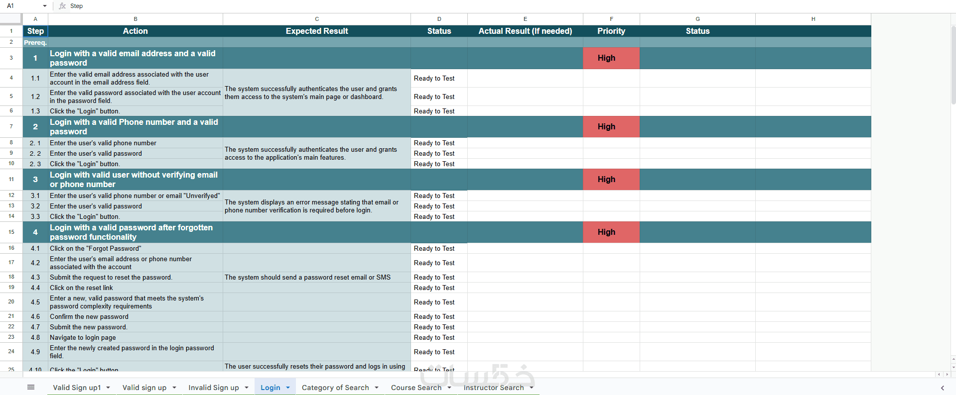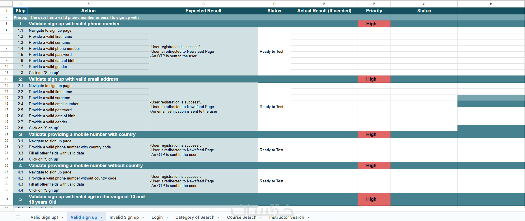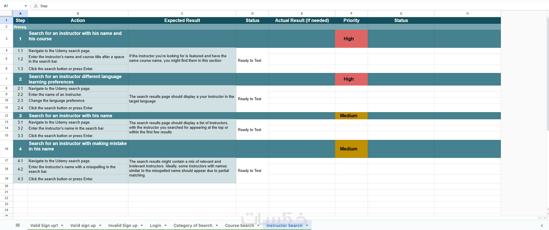 ملف Test Cases / Test Scenarios بصيغة Excel/PDF (حسب الاتفاق).