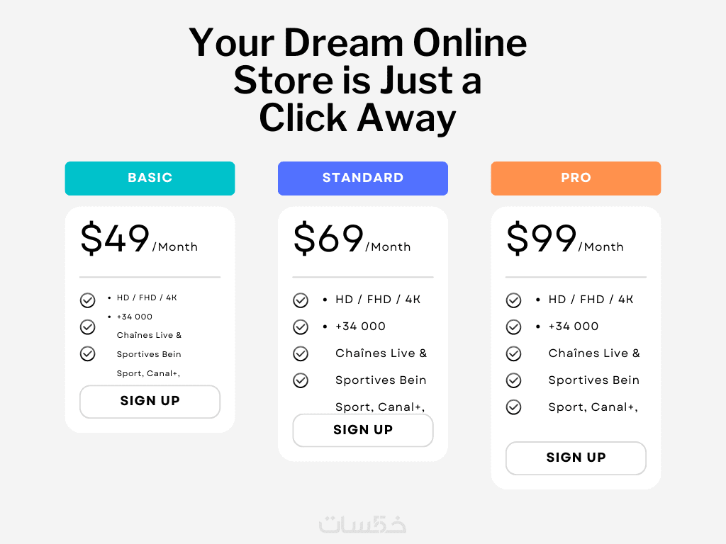- فاضل بين الخدمات المختلفة التي تابعتها واختر الأنسب منها لمتطلباتك ثم اشتر الخدمة للبدء بتنفيذ المشروع.