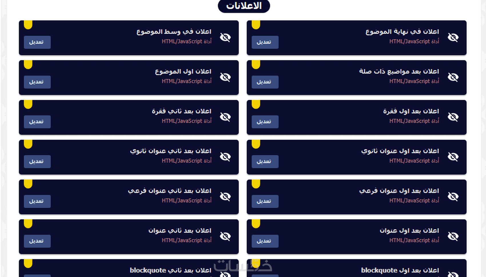 يوجد 14 اماكن لوضع الاعلانات في الصفحة الموضوع