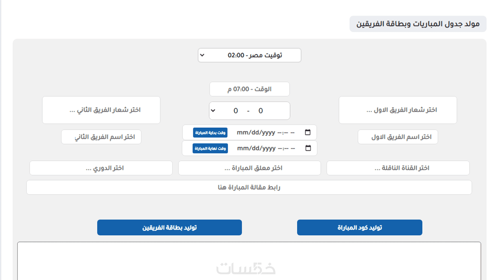توجد لوحة توليد لجدول المباريات.