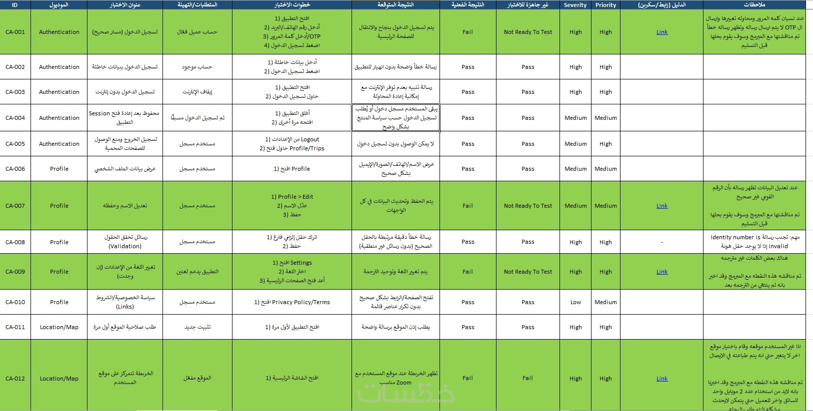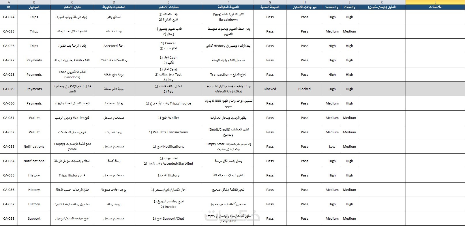Test Cases مكتوبة (Excel / PDF)