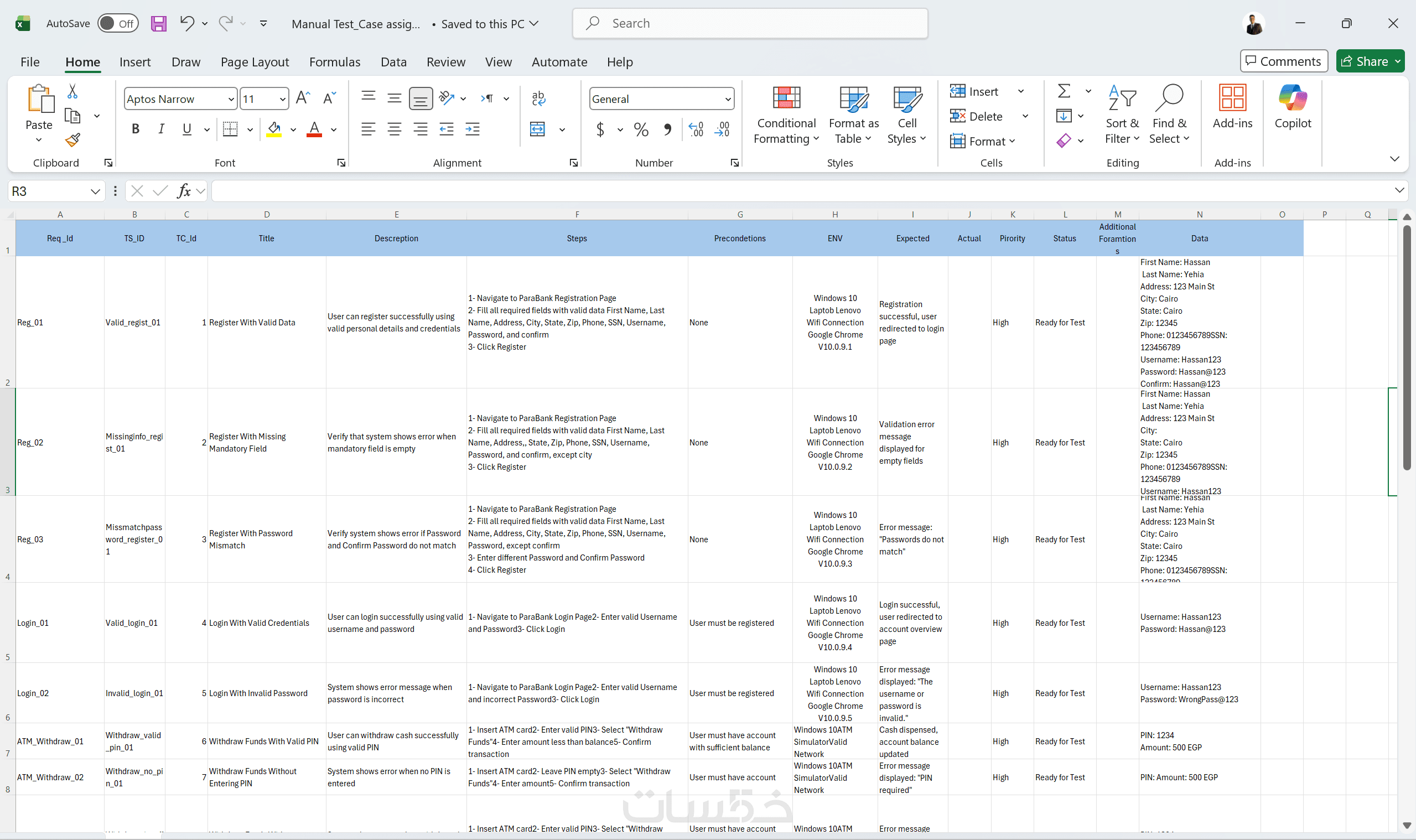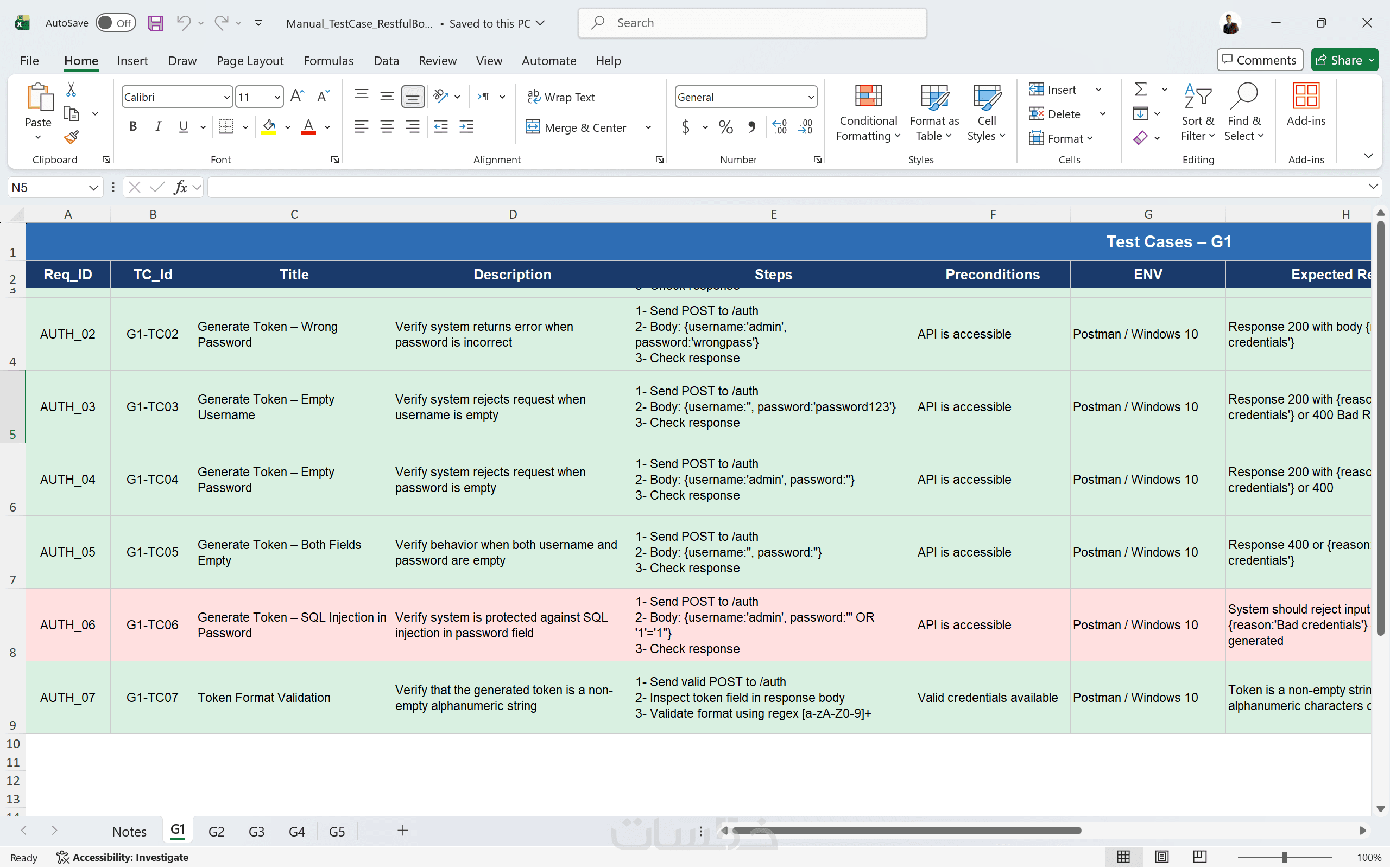تنفيذ حتى 30 حالة اختبار (Test Cases) تشمل السيناريوهات الأساسية