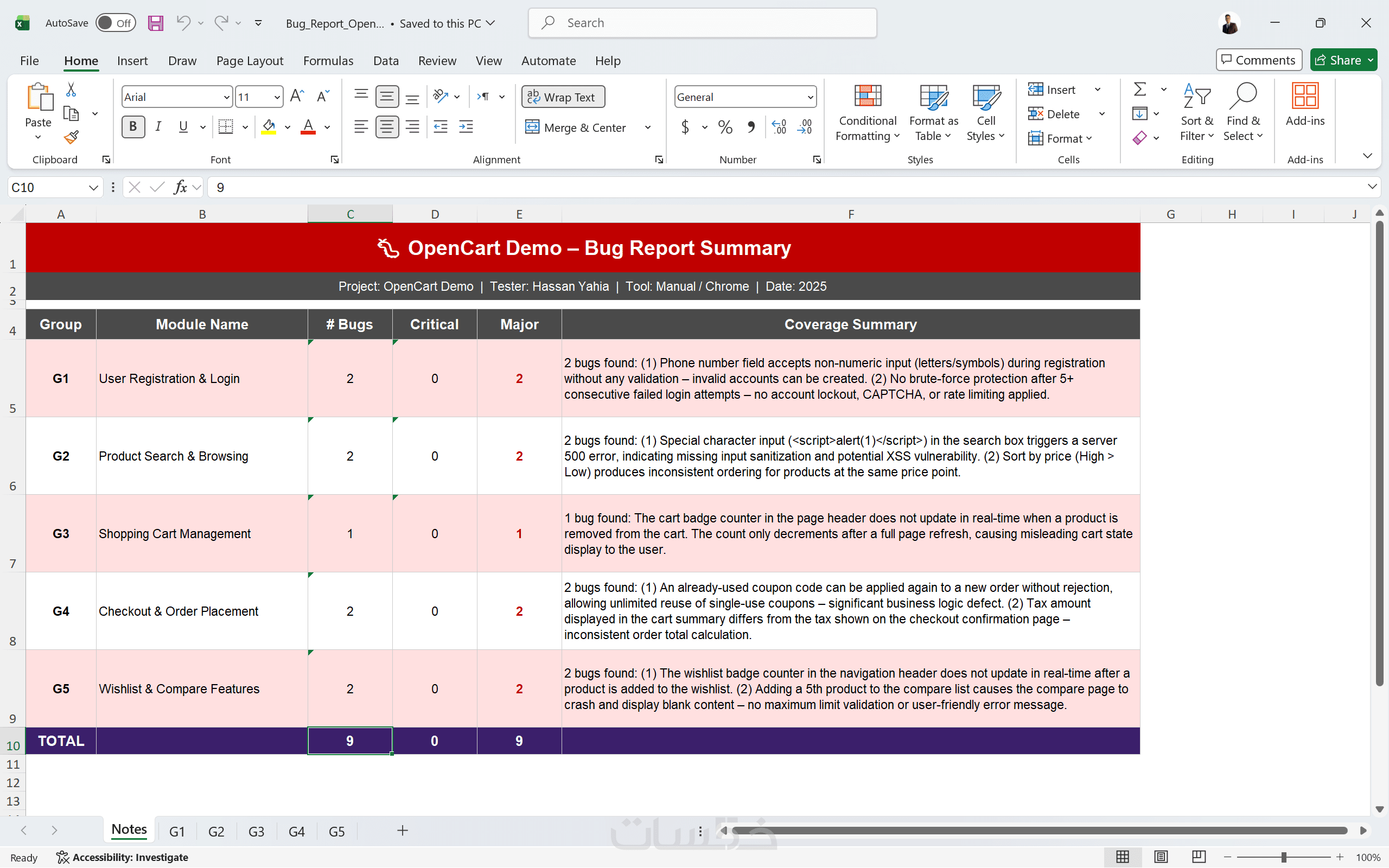 اكتشاف وتوثيق حتى 15 خطأ (Bug) كحد أقصى