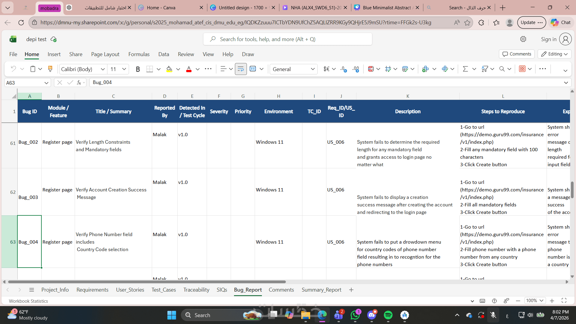 خطوات إعادة حدوث الخطأ (Steps to Reproduce)