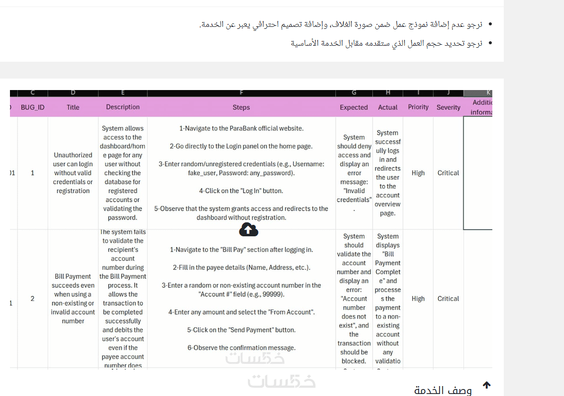التسليم: تقرير بصيغة PDF يوضح كافة الأخطاء المكتشفة مع لقطات شاشة (Screenshots) توضيحية.