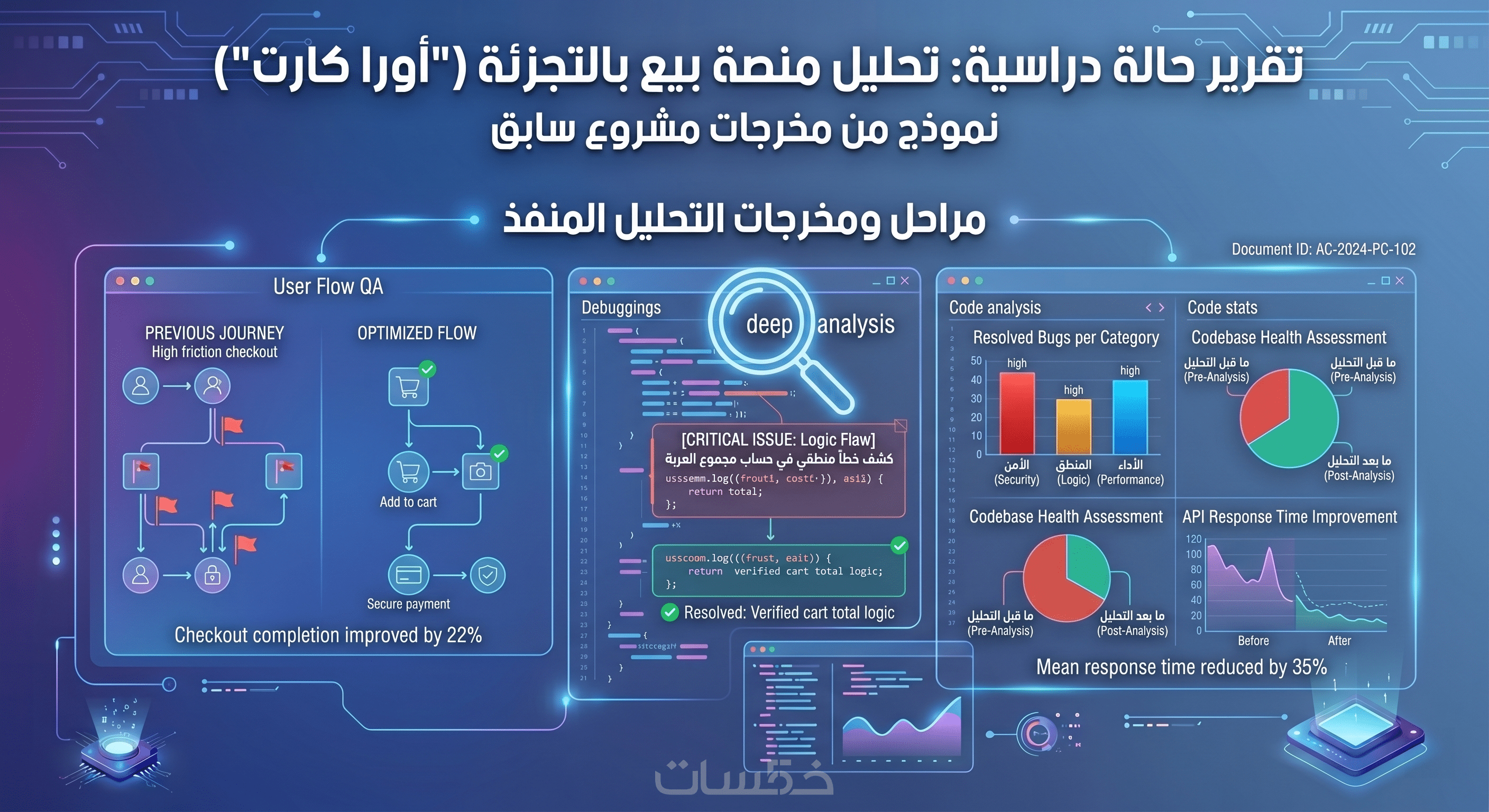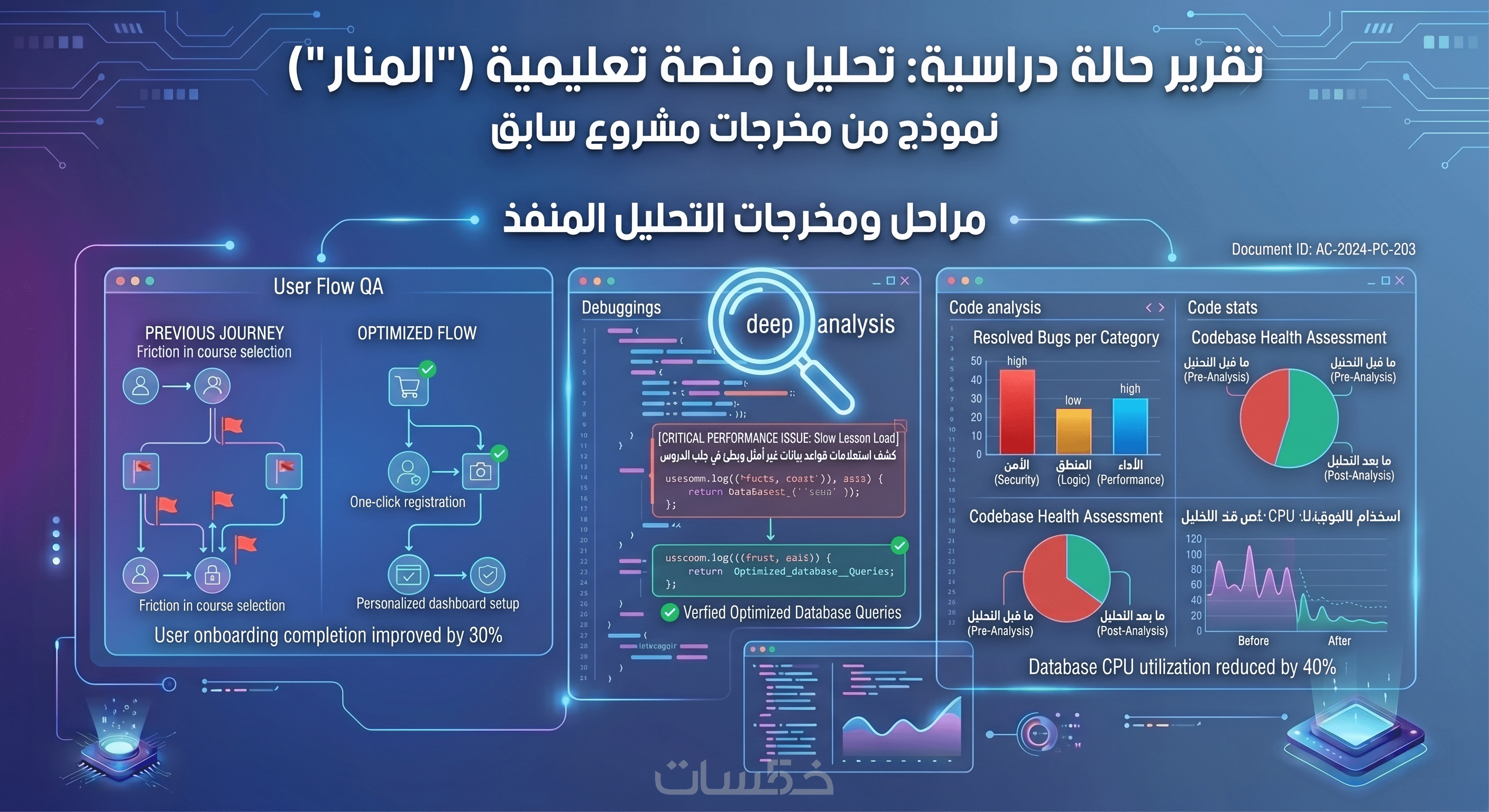 • مراجعة الكود (Code Auditing): أحلل الـ Codebase . أراجع الهيكلة، كفاءة كتابة الكود، استهلاك الموارد، واكتشاف الممارسات الخاطئة.