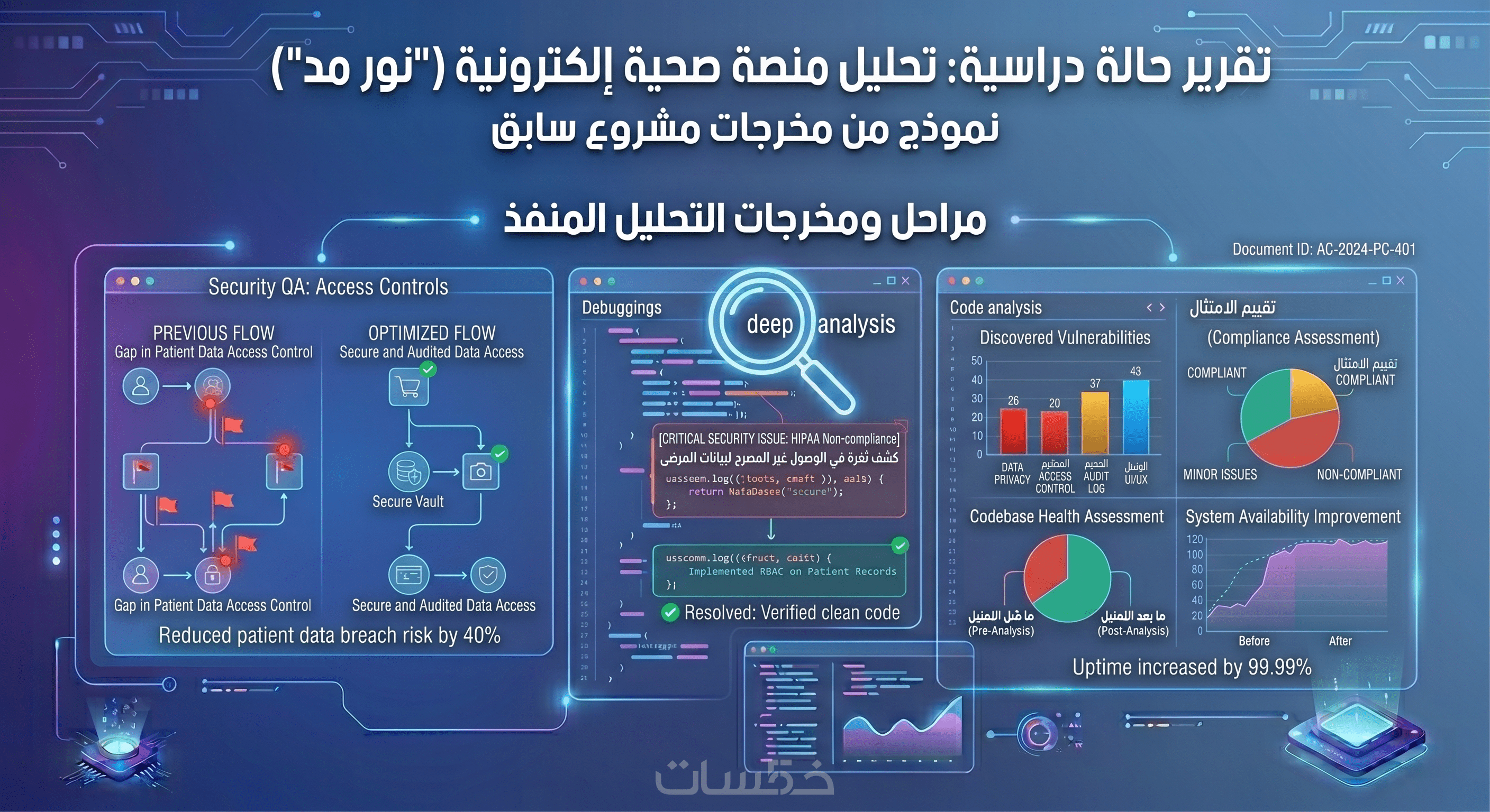 أقدم لك استشارة تقنية وفحصاً هندسياً شاملاً لمشروعك (QA & Code Review). أنا لا أكتفي بالنظر للموقع من الخارج، بل أغوص في التفاصيل المعمارية للكود لأضع يدي على المشاكل.