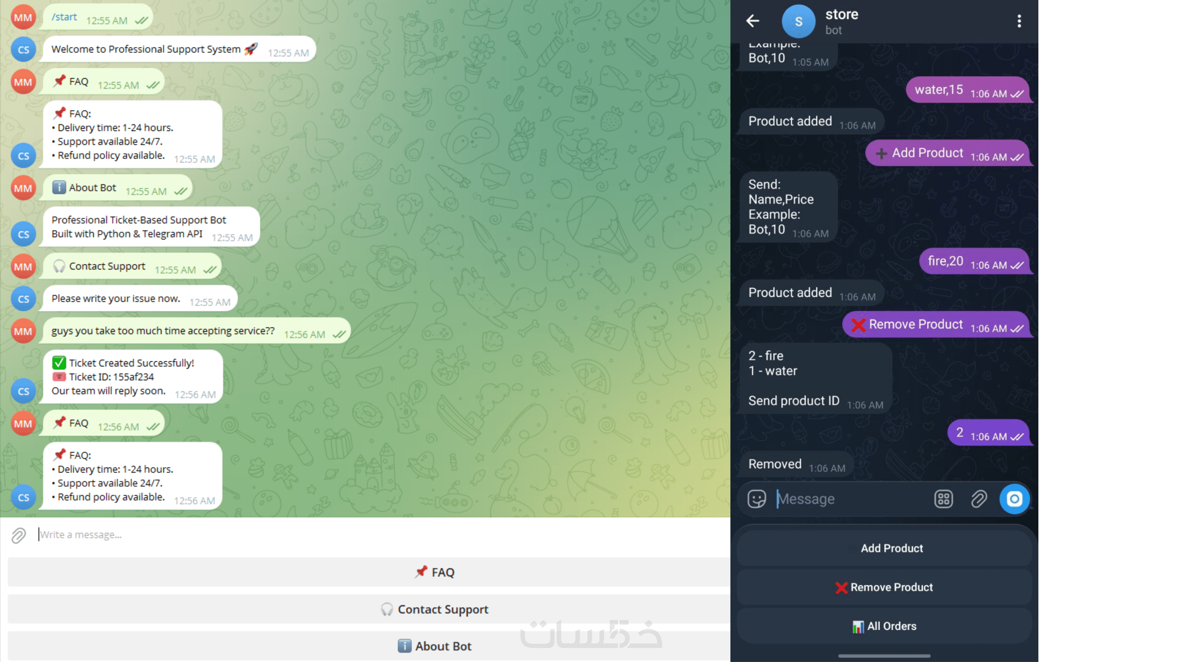 بوت متجر لإدارة المنتجات والطلبات