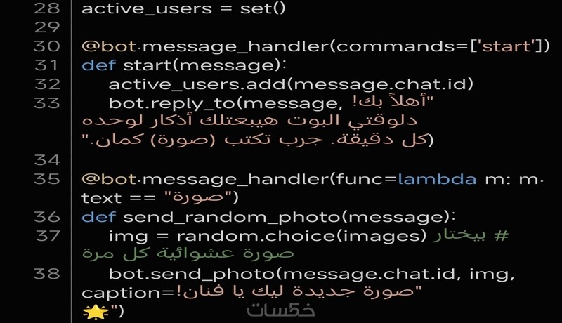 برمجة بوت تيليجرام بلغة بايثون يقوم بمهمة واحدة وهي: (الرد التلقائي برسالة ترحيب عند الضغط على start، أو الرد على كلمة مفتاحية واحدة فقط).