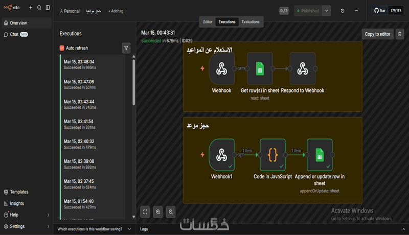 ربط الشات بوت ب n8n ( بحد اقصي 3 worflow )