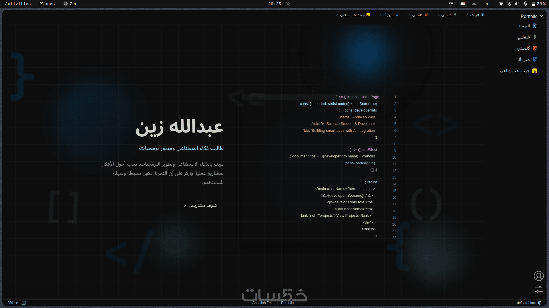 الأطر الحديثة: (React, Next.js).