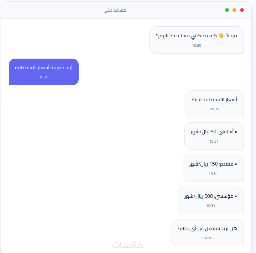عدد الوكلاء: تطوير وتشغيل وكيل ذكاء اصطناعي واحد (1 Chatbot).