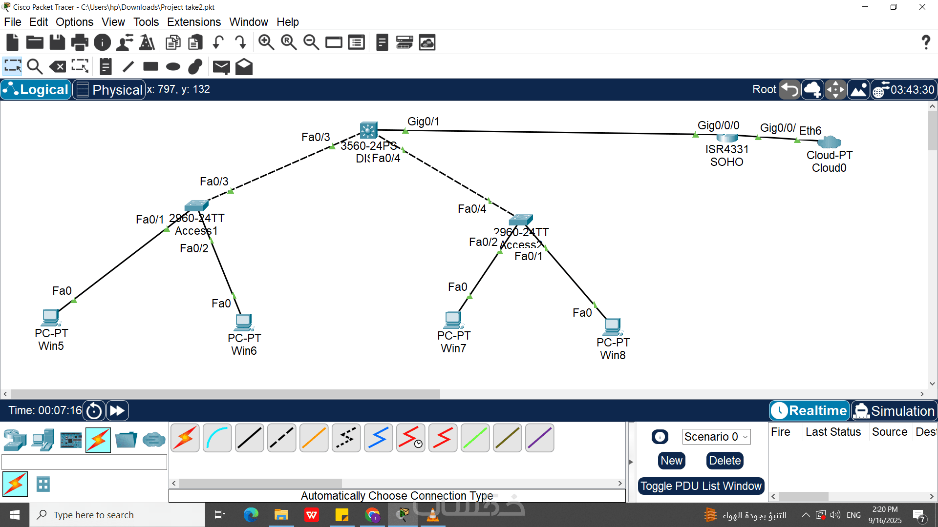 تنفيذ إحدى البرتوكولات والخدمات الشبكية مثل: (STP, VTP, SSH, Telnet, DHCP, EIGRP, IPv6, ASL, IPv6)