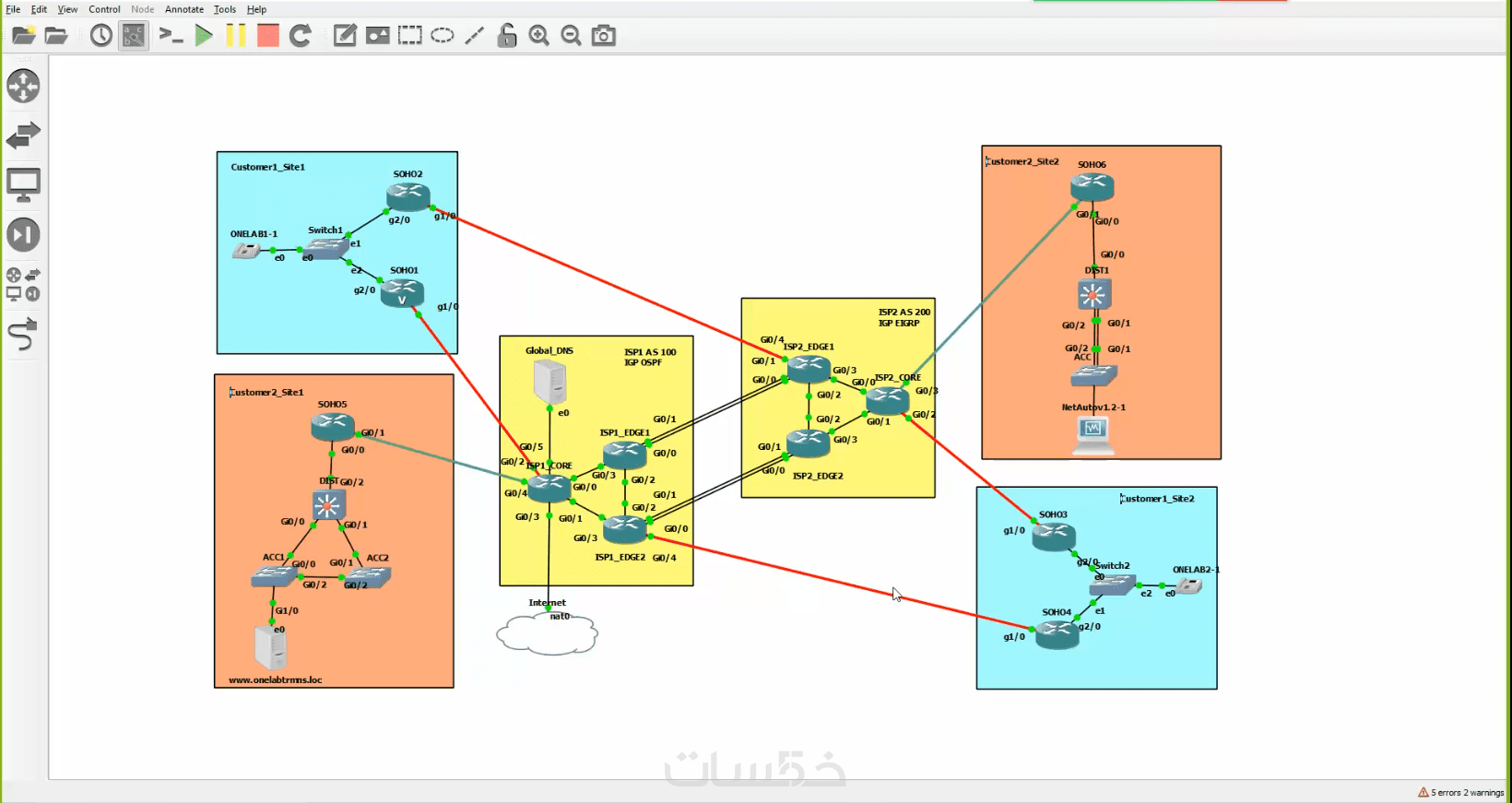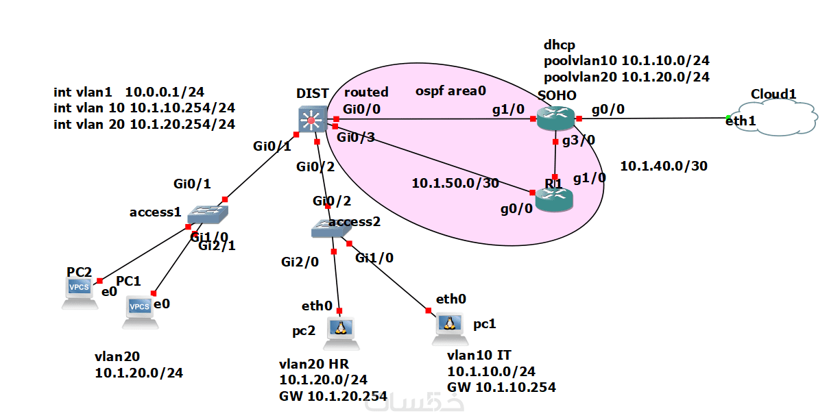 المستوى في هذه الخدمة يتضمن تجهيز مختبر (Lab) يضم تجهيزات الشبكة المطلوبة بعدد 4 أجهزة شبكية (مثلا: Router و Switch و Firewall أو Server)