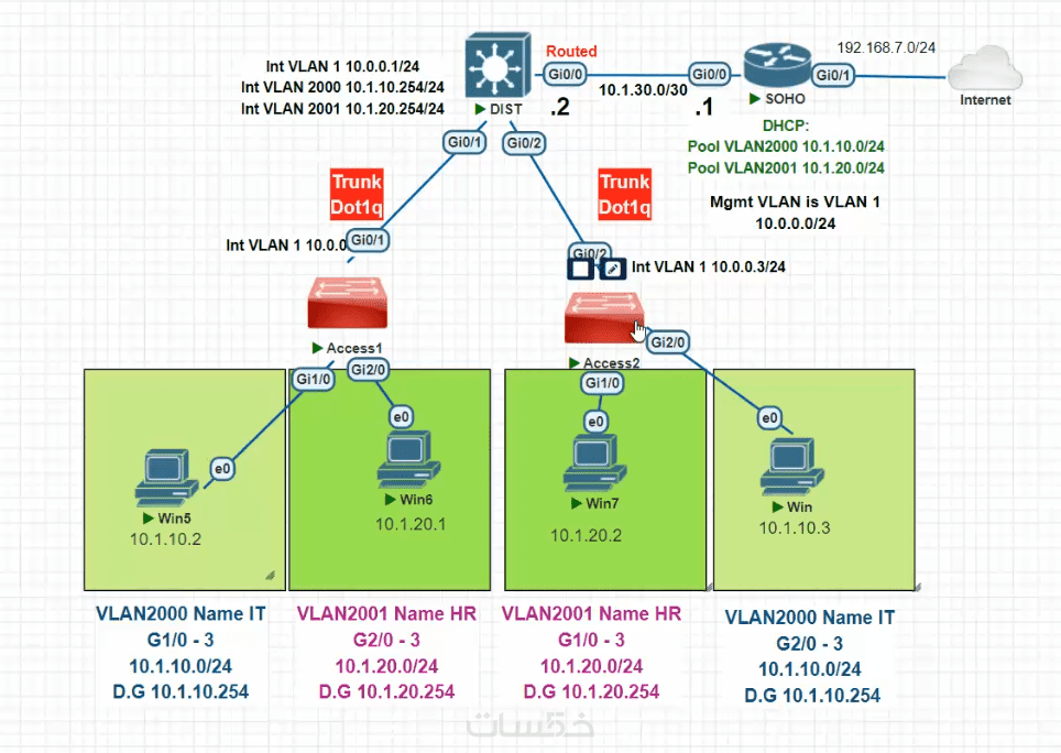 سنلتزم بإنجاز الإعدادات والتكوين الصحيح والدقيق لأجهزة الشبكة المختلفة والأجهزة الطرفية الحاسوبية (PCs)، من دون تفعيل أي برتوكولات أو اعدادات اضافية.