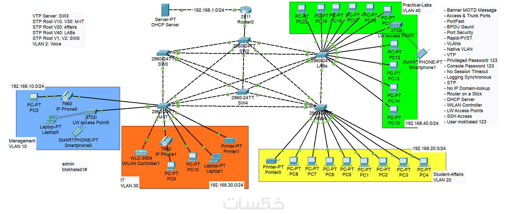 - البروتوكولات المطلوبة إن وجدت: (مثل: VLAN، DHCP، NAT، OSPF، إلخ).