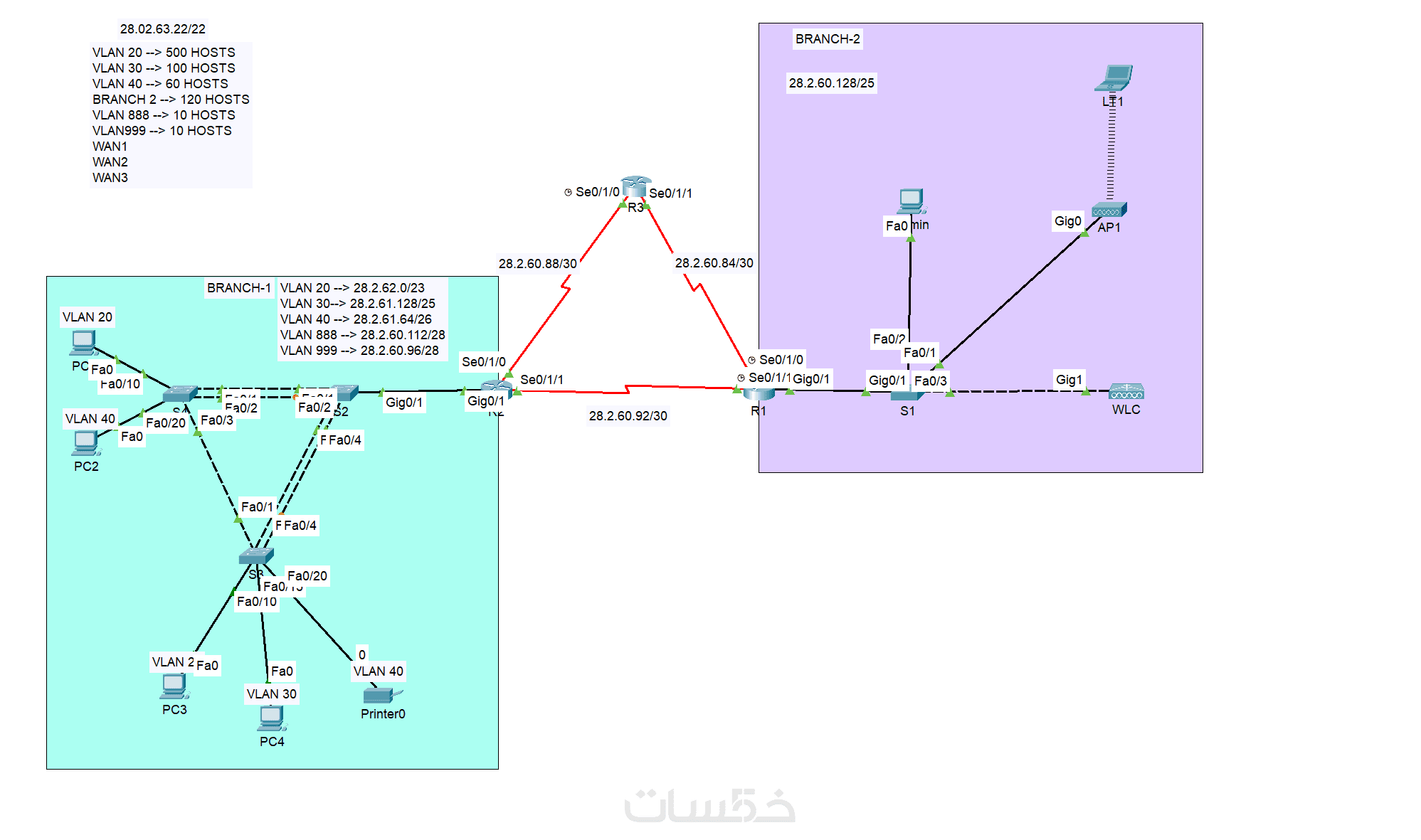 Cisco Packet Tracer، مشاريع شبكات، محاكاة الشبكات، مشروع تخرج شبكات، تصميم شبكات، CCNA