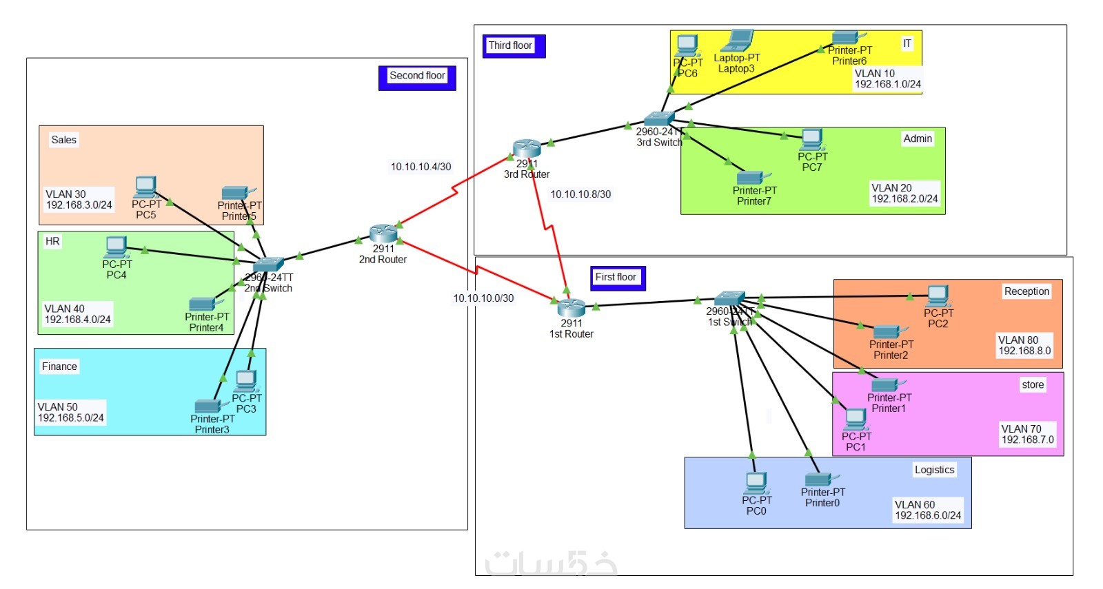 إذا كنت تريد تصميم شبكة صحيح من الناحية العملية، وليس مجرد توصيل أجهزة بدون منطق،