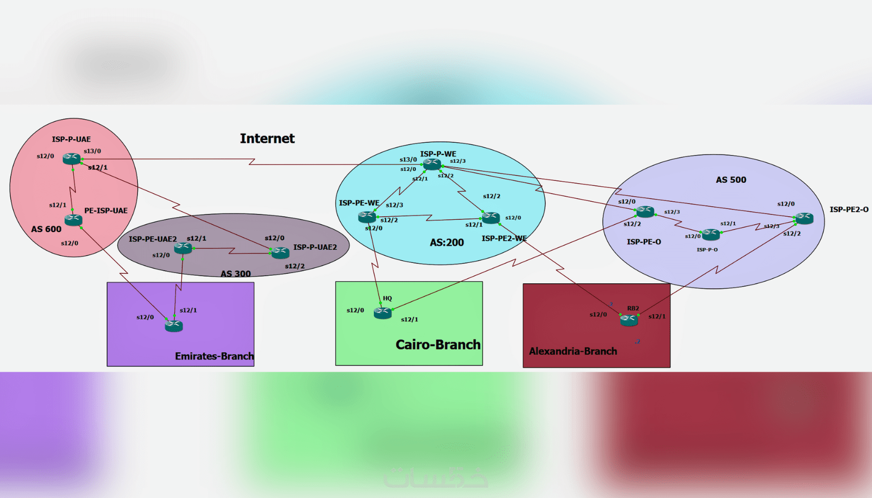 شبكة عالمية عبر الانترنت ( 6 - 10 راوتر) BGP + VPN-Site-to-Site + Dynamic routing