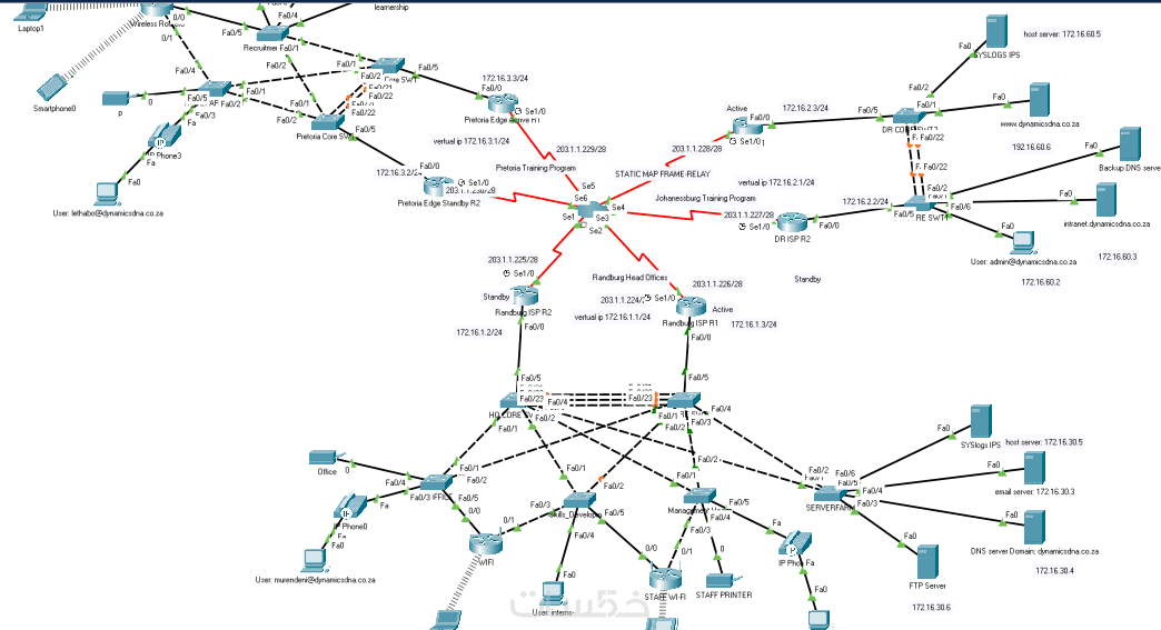 توزيع العناوين (IP Subnetting) وإعداد الـ VLANs لتنظيم حركة المرور.
