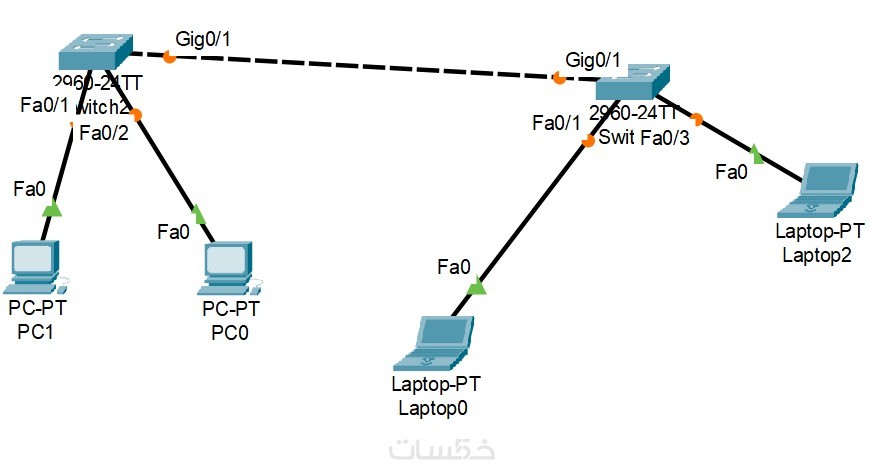 1 - تصميم شبكة تحتوي على (5 إلى 10) أجهزة كحد أقصى (Router/Switch/PCs/Laptops)