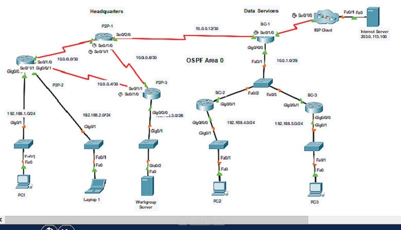 سأقوم بتصميم شبكة متكاملة باحترافية عالية تشمل إعداد وتشغيل البروتوكولات الأساسية للأجهزة، بالإضافة إلى تنفيذ بروتوكولات التوجيه (Routing).