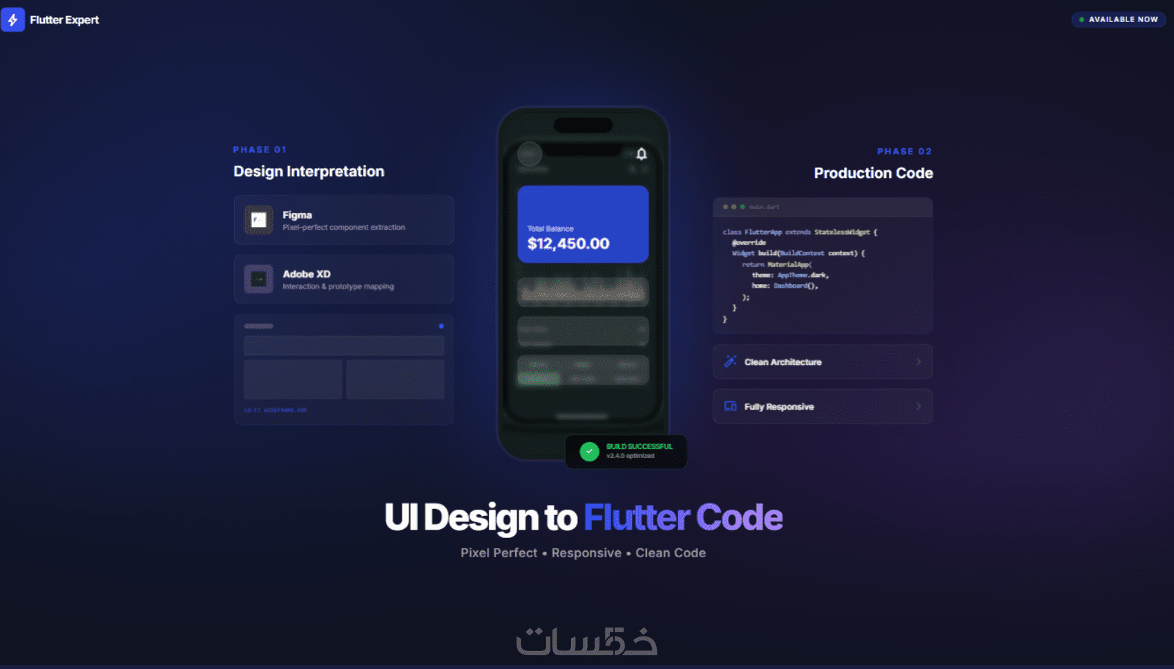 تحويل تصميم UI إلى تطبيق Flutter احترافي مع كود نظيف ودعم فني