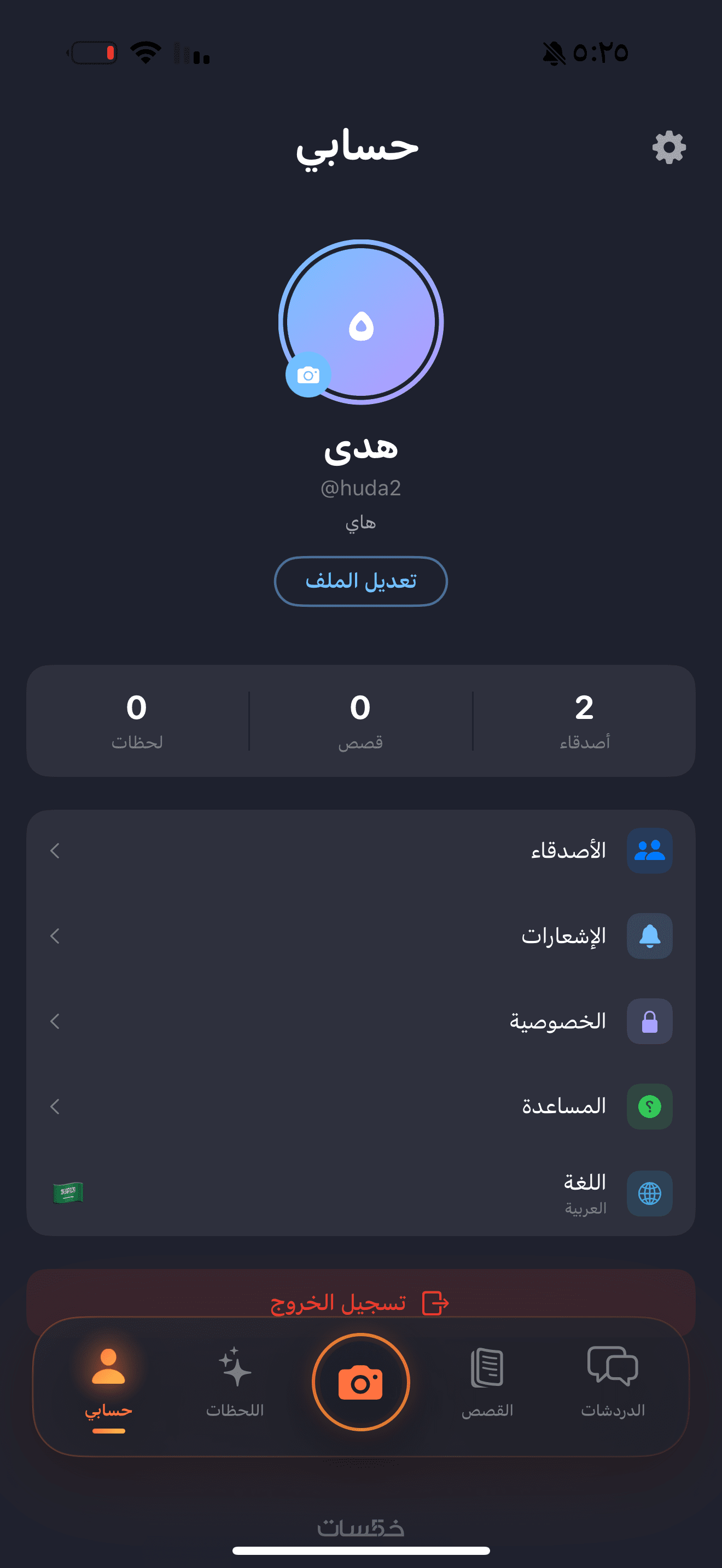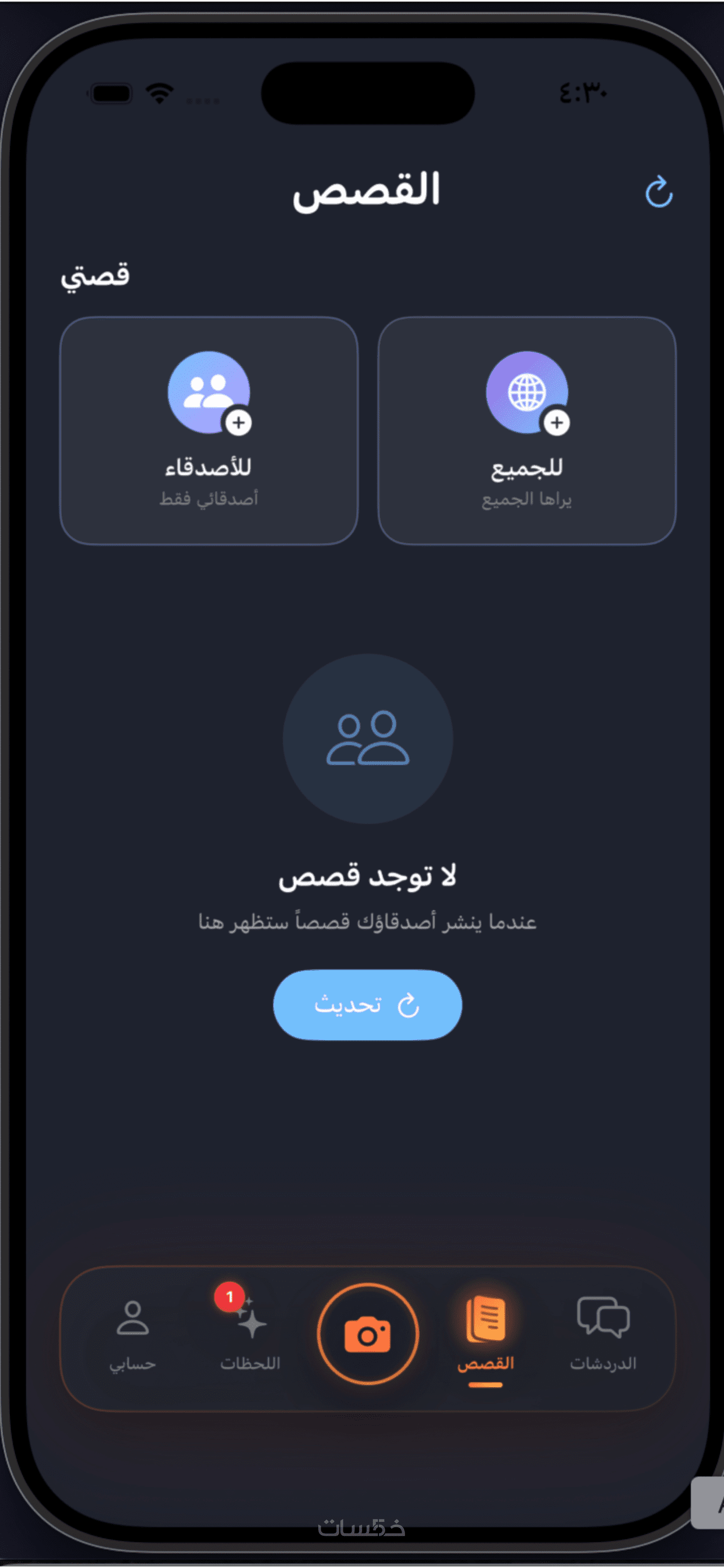 - تسجيل دخول / دردشة / رفع صور / إشعارات