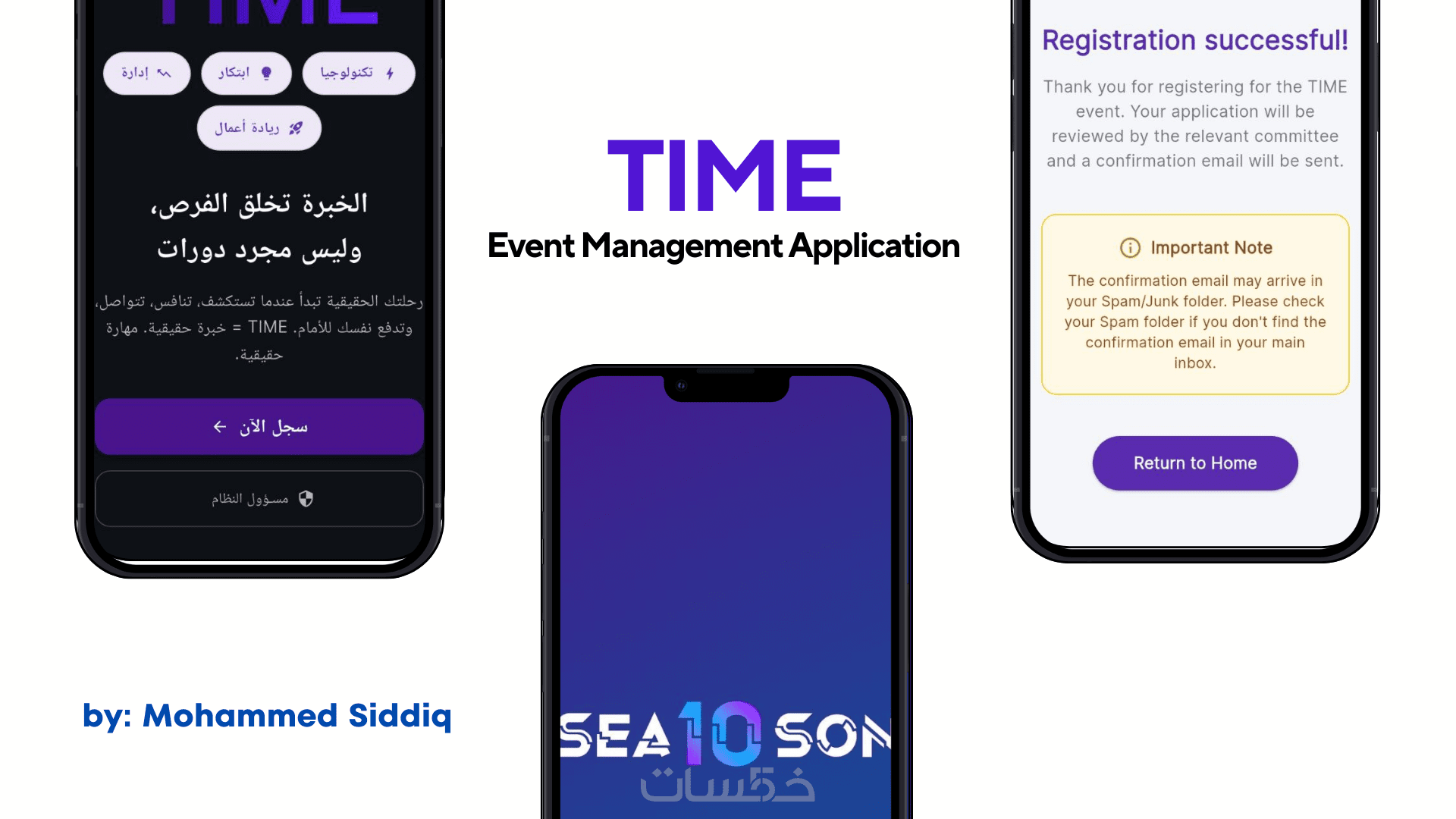 من خلال خبرتي في تطوير تطبيق "TIME"، سأوفر لك نظاماً يسمح للمستخدمين باستعراض تفاصيل الفعالية، التسجيل عبر نماذج ذكية، ورفع مستندات الدفع أو الهوية بسهولة.